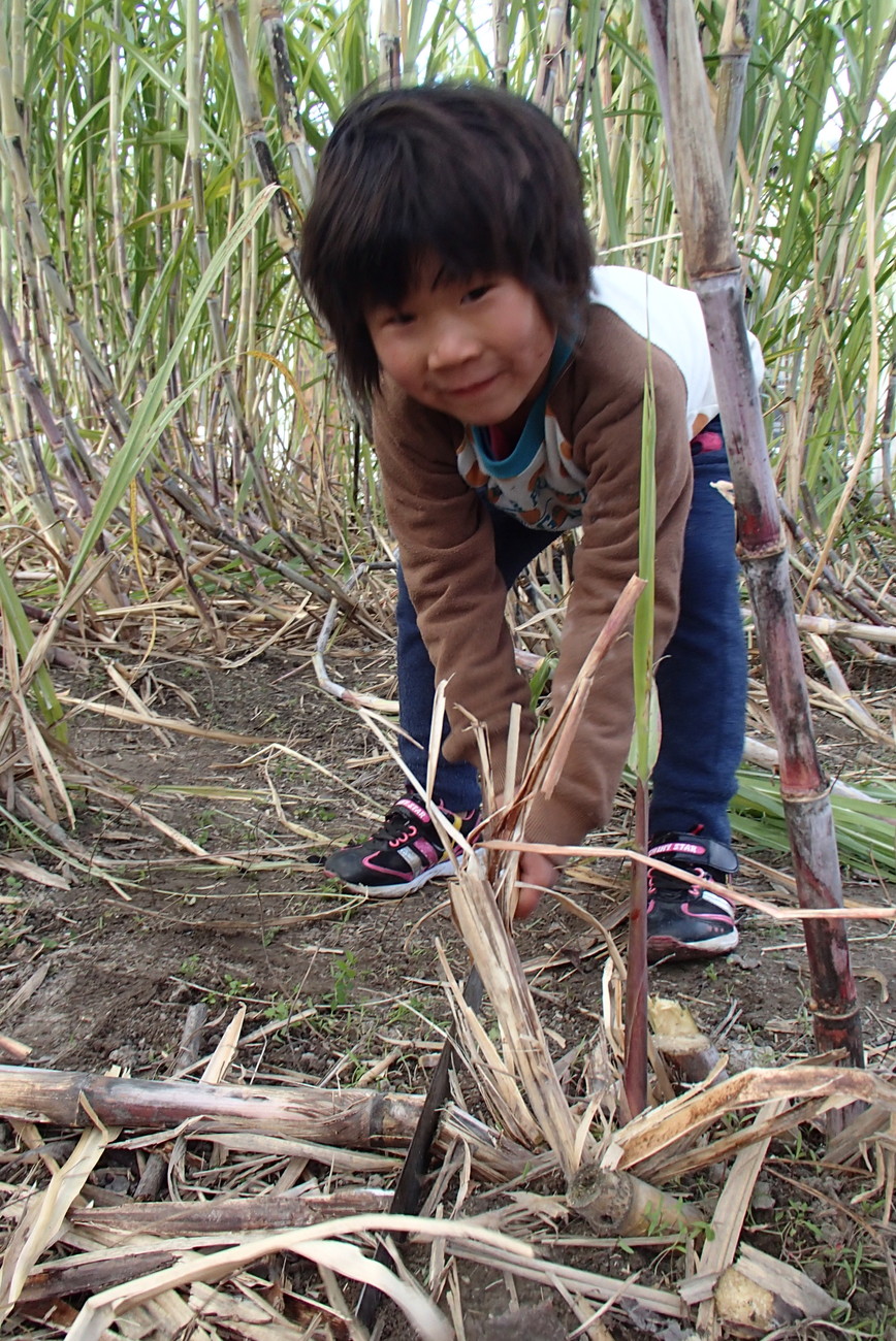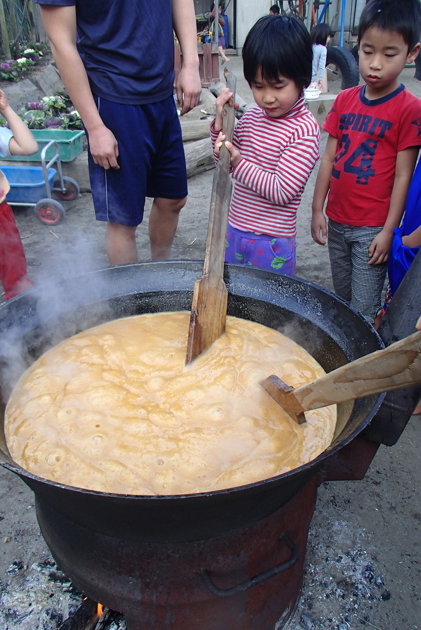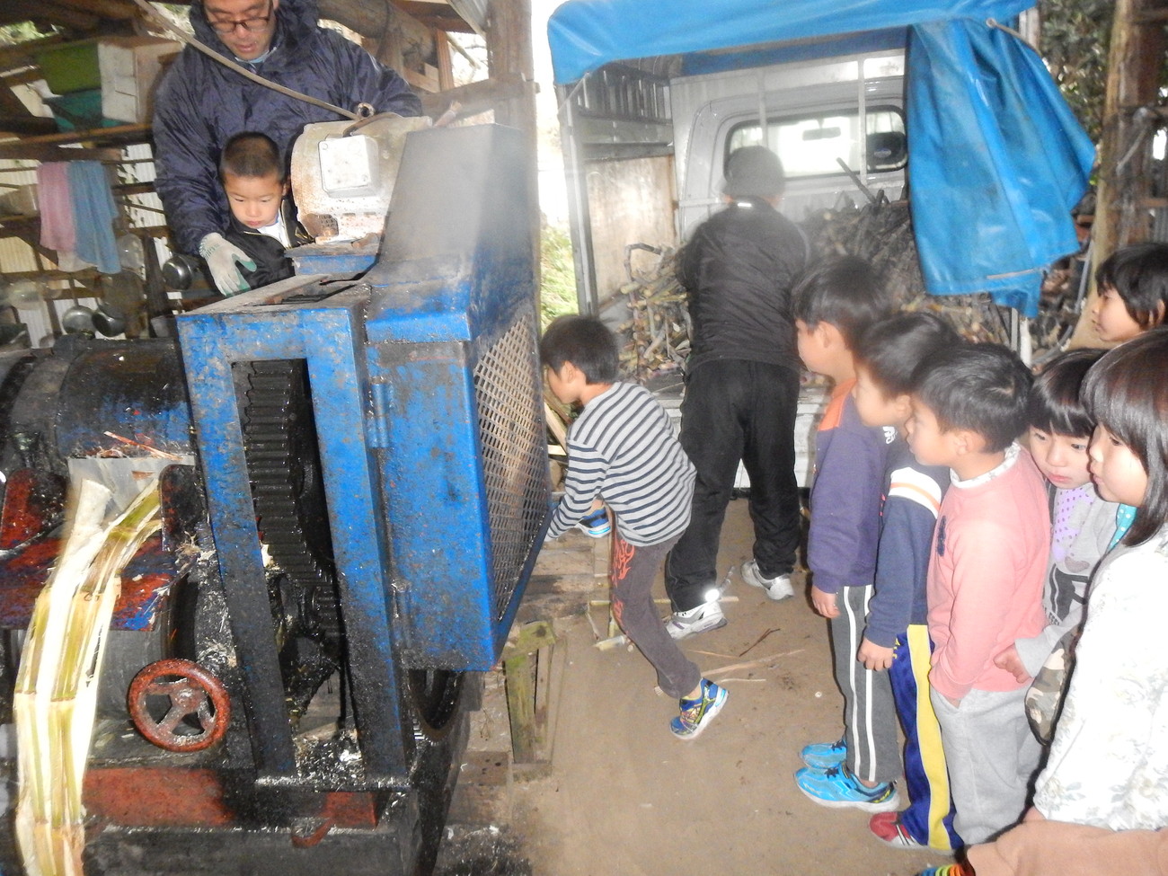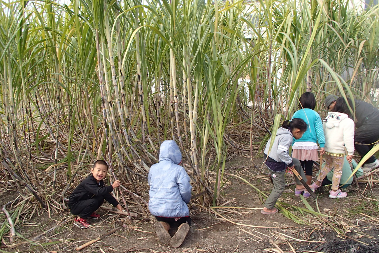 保育園の畑で育ったサトウキビから黒砂糖づくりをしましたよ。