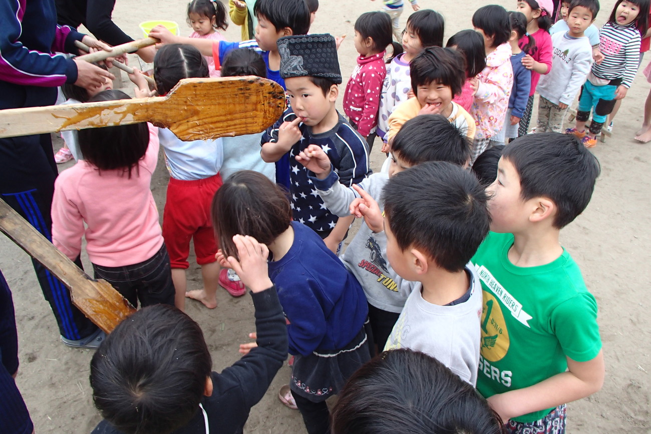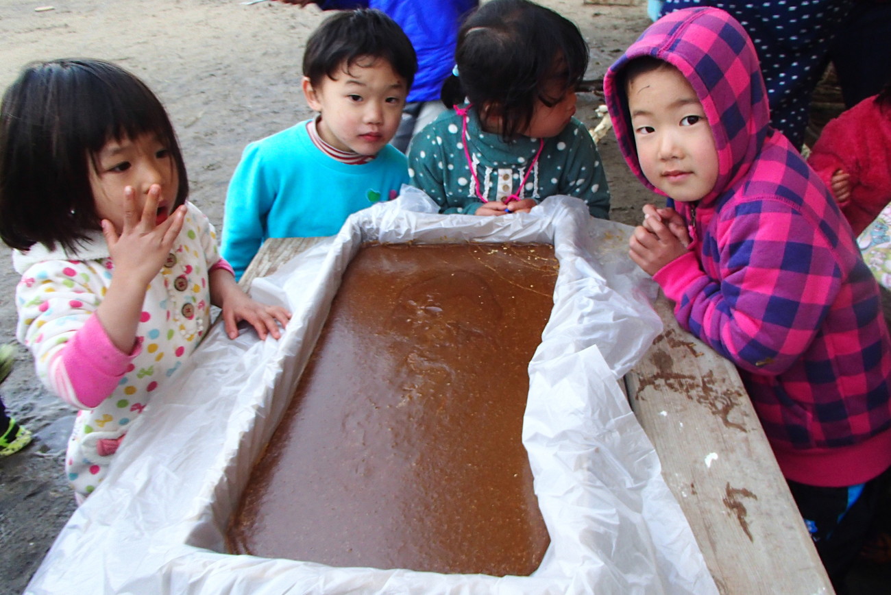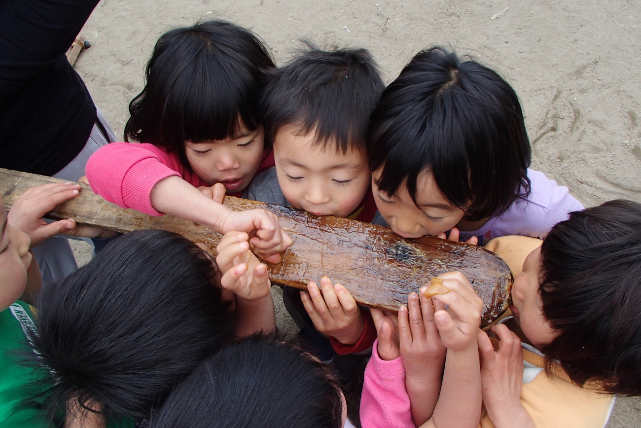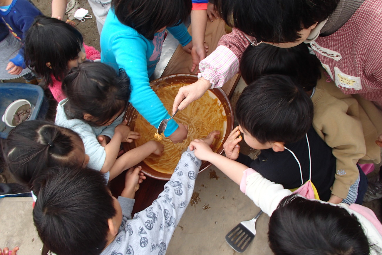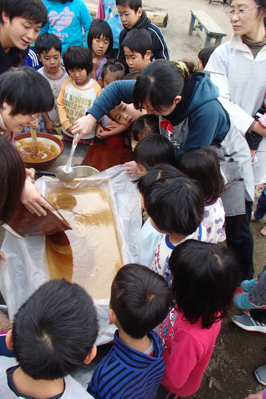 保育園の畑で育ったサトウキビから黒砂糖づくりをしましたよ。