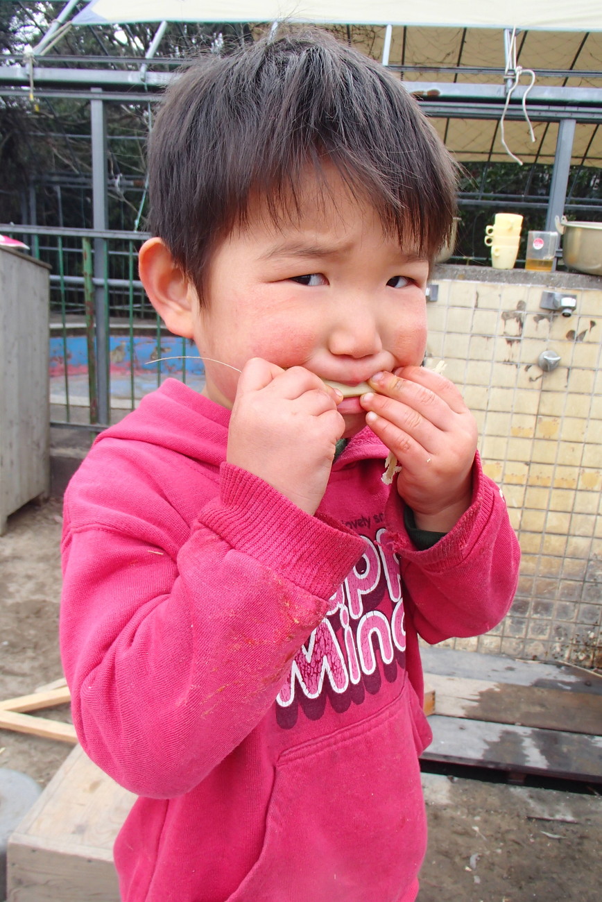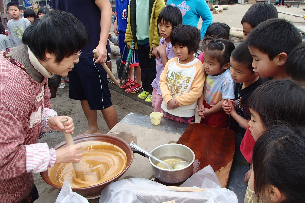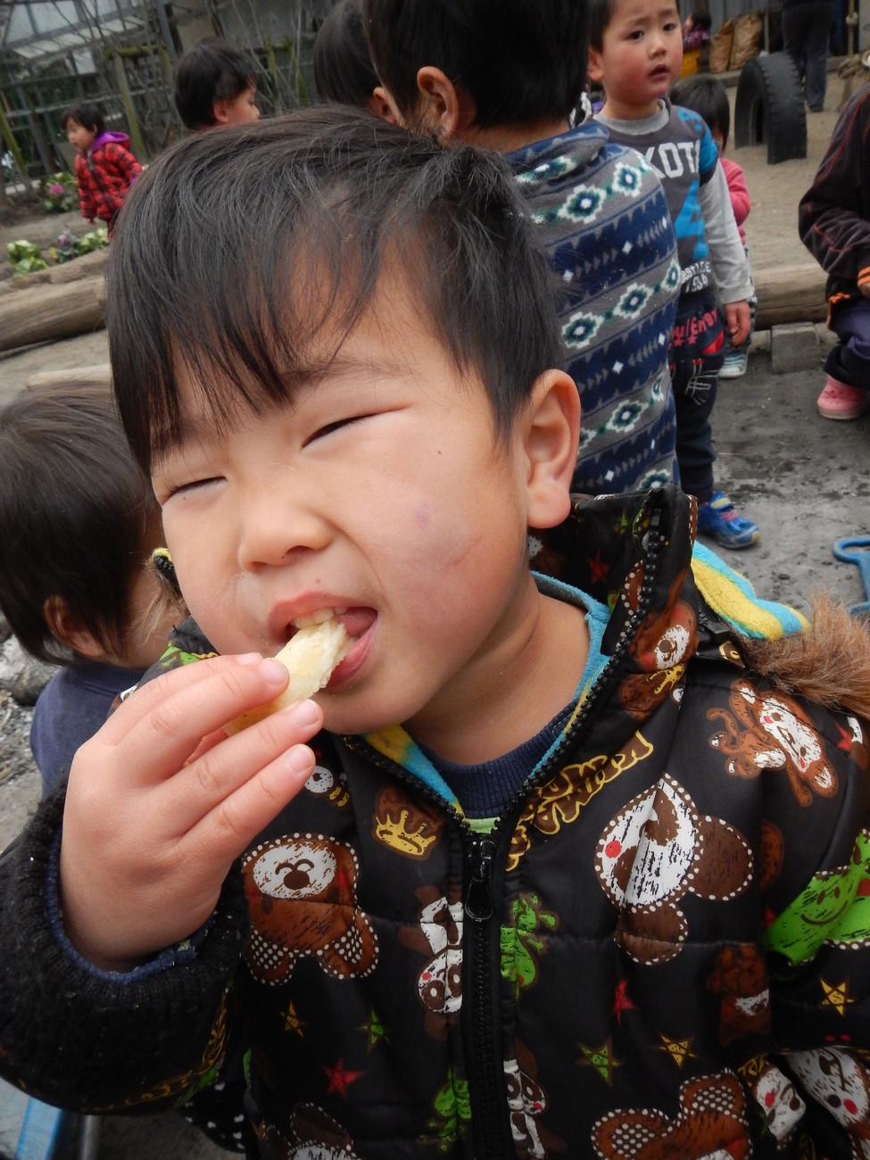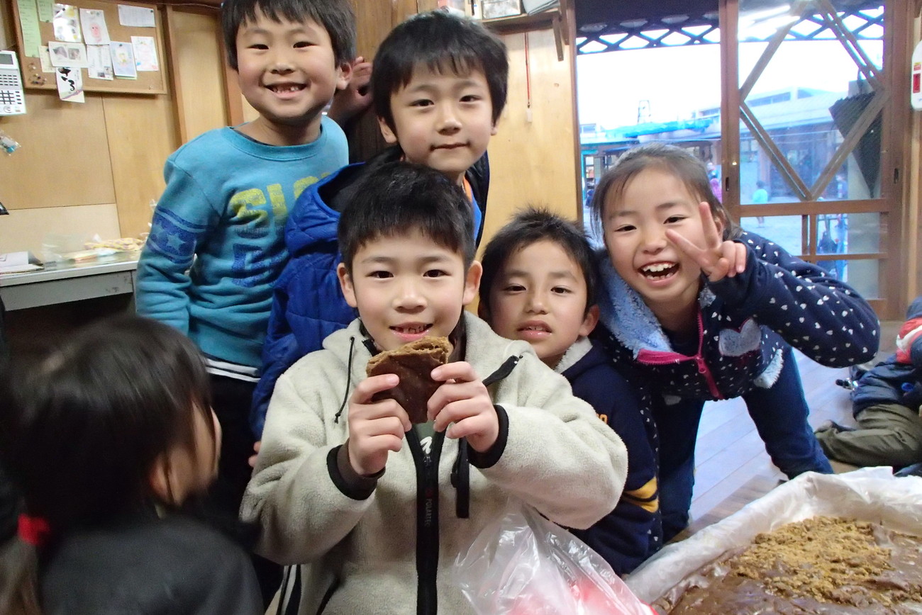 保育園の畑で育ったサトウキビから黒砂糖づくりをしましたよ。