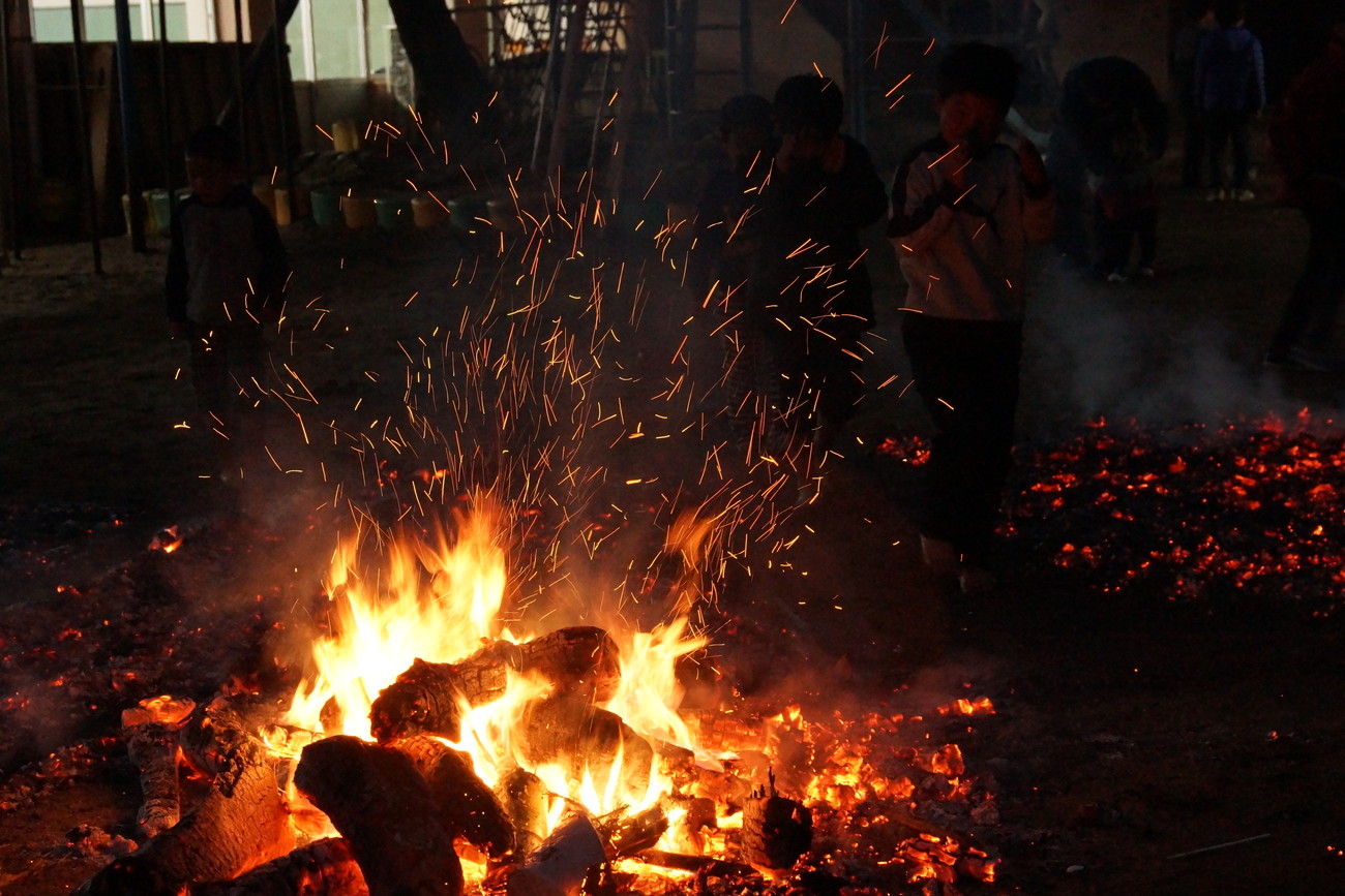 今年一年、病気をしないよう、鬼火でできた炭火で餅を焼いて食べましょう