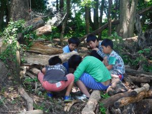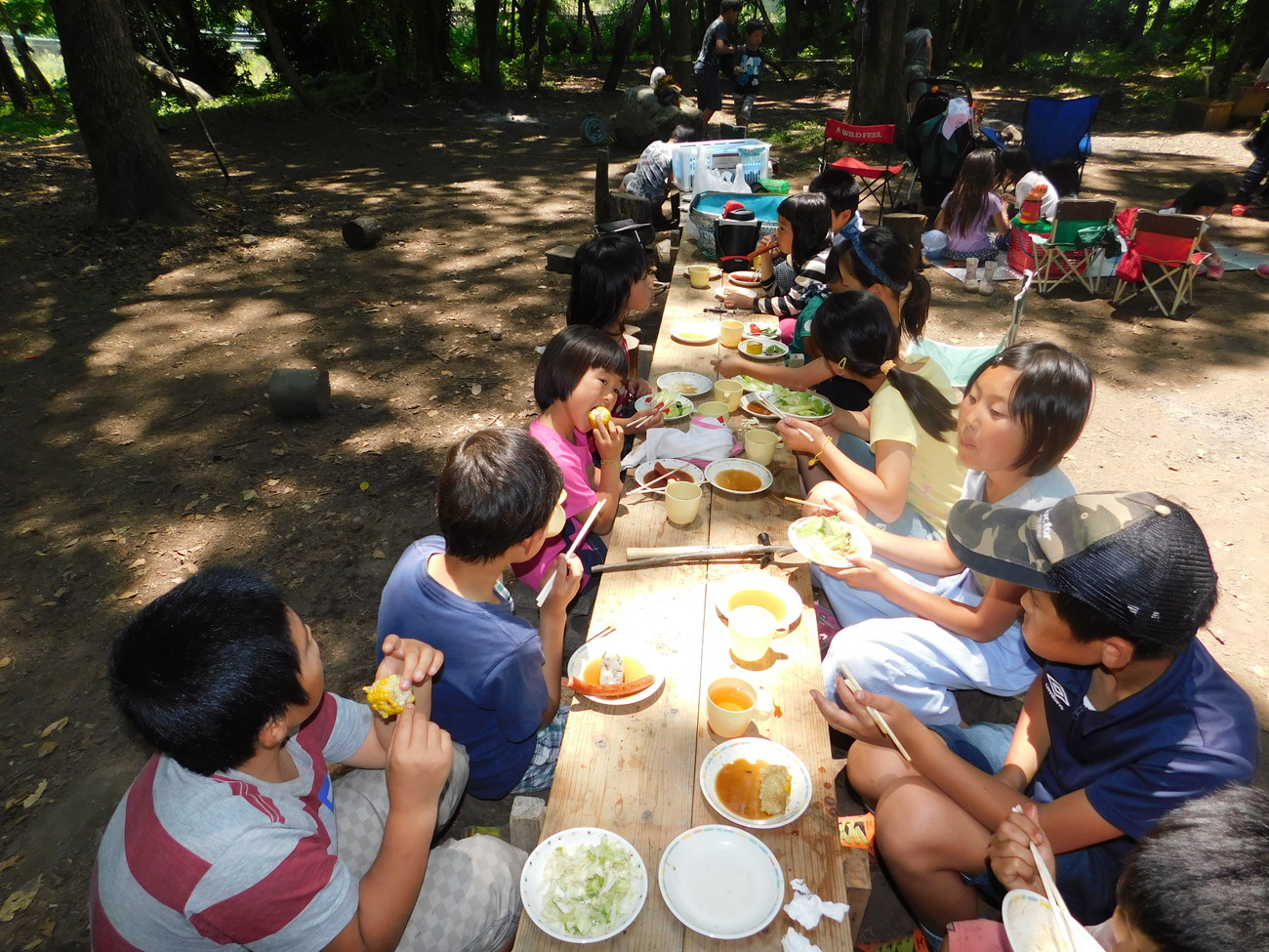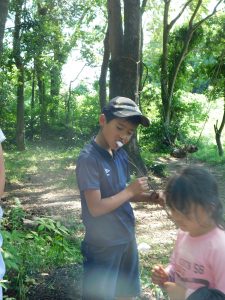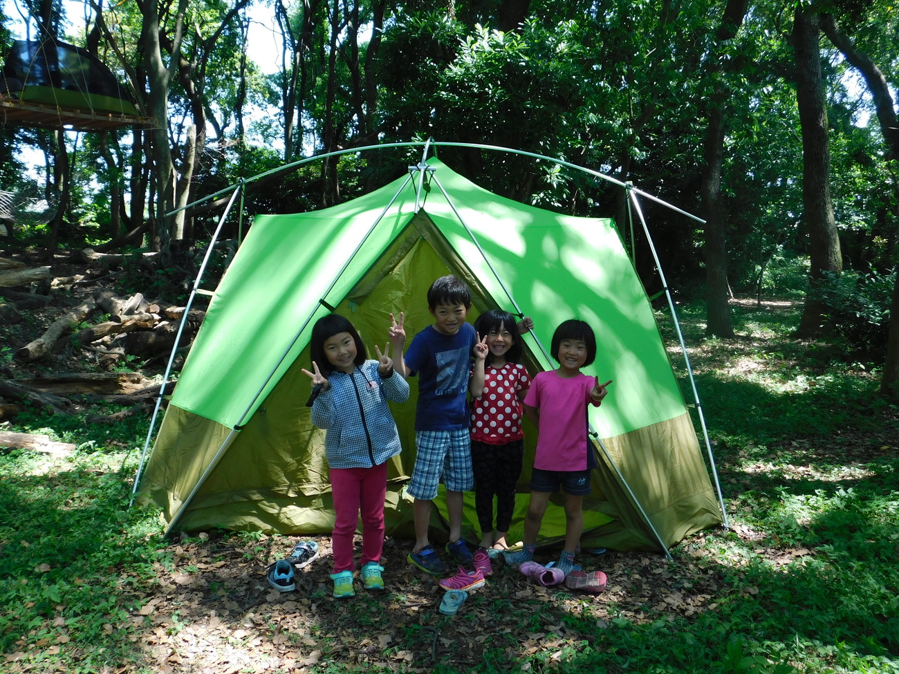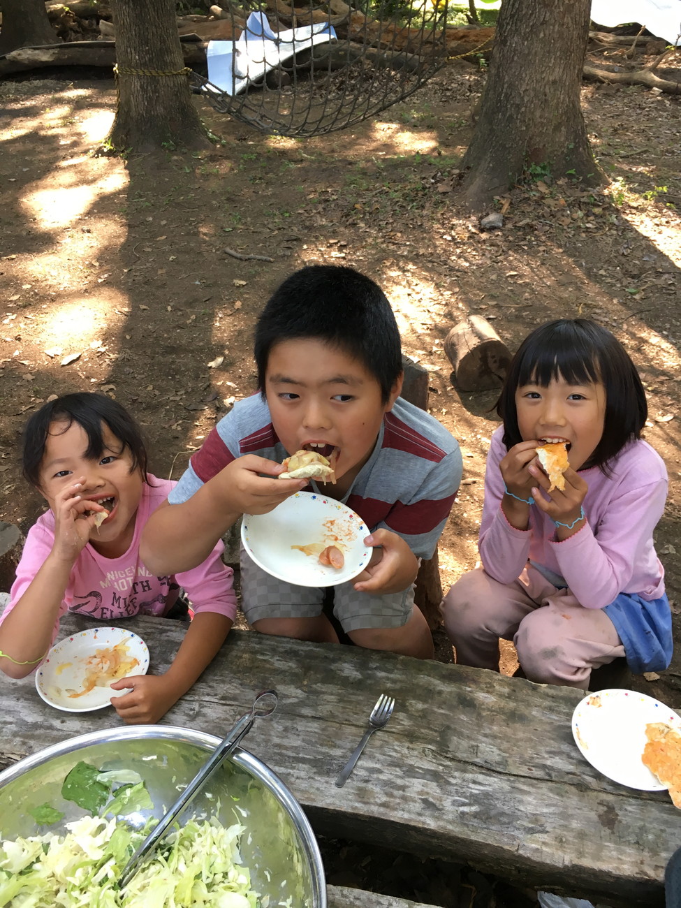 ぞう組さんに続いて学童さんも元気の森でキャンㇷ゚をしました