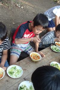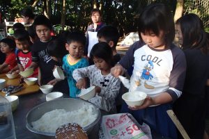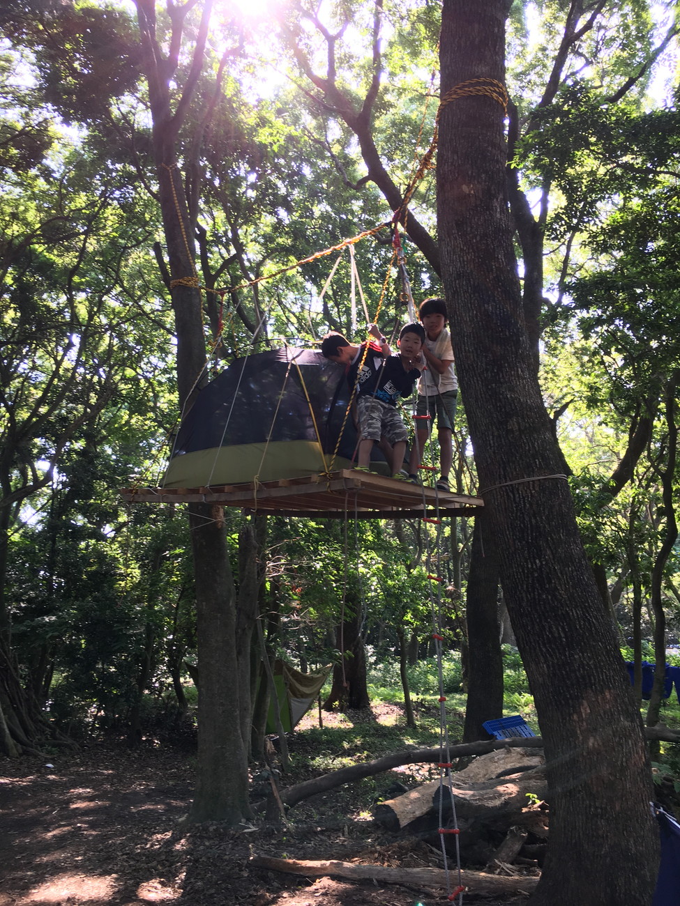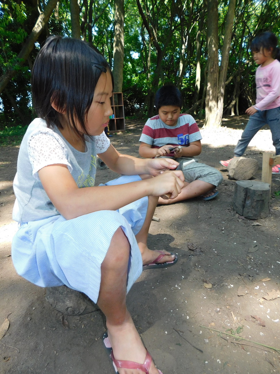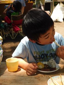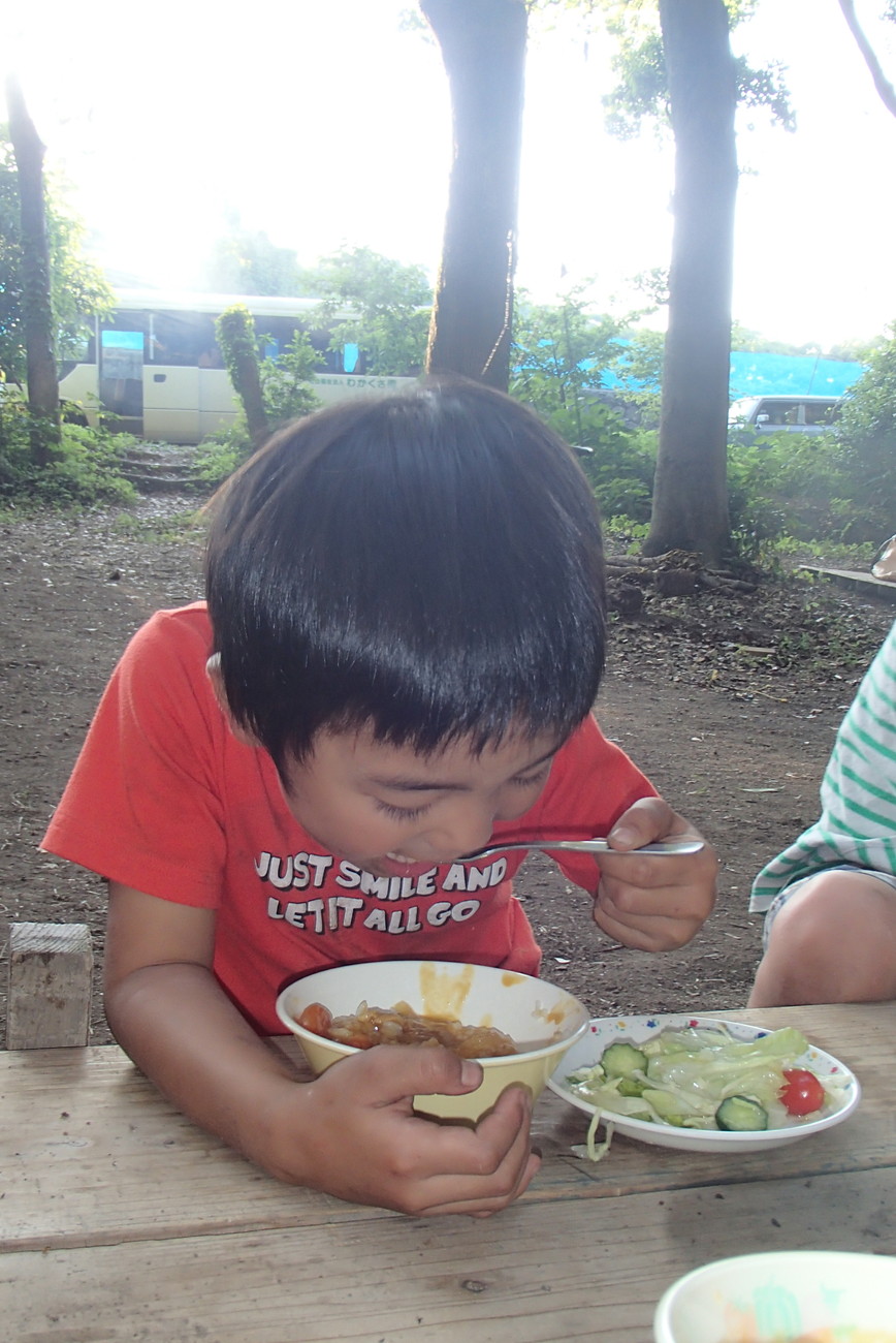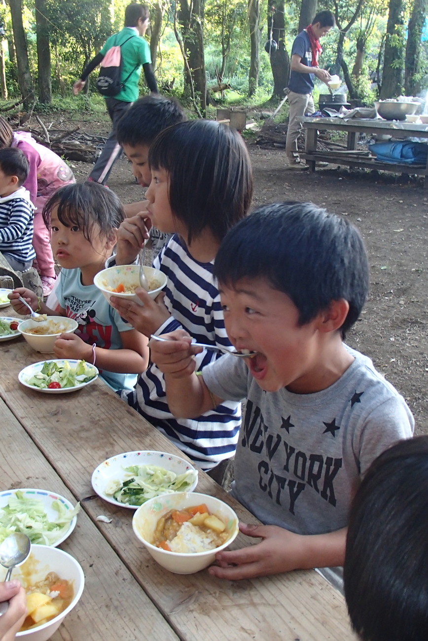 ぞう組さんに続いて学童さんも元気の森でキャンㇷ゚をしました