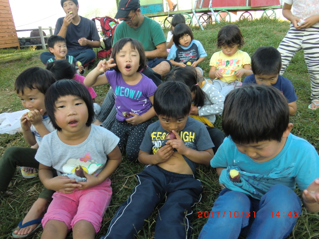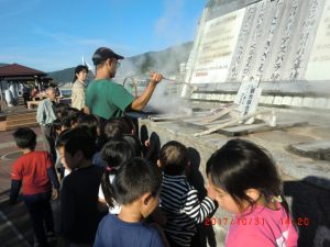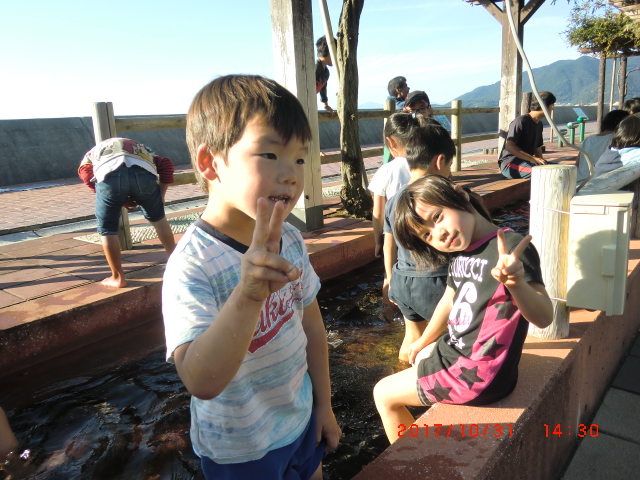 下山後、小浜の足湯に立ち寄りました。 保育園でほった芋をふかしておやつにしましょう