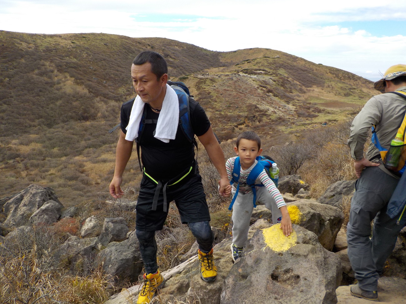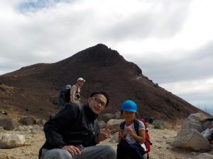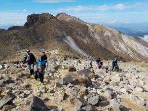 目指す山頂が見えてきました ええっ! まだあそこ!?とお父さんたち