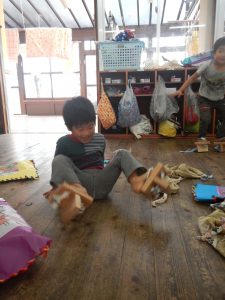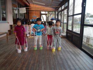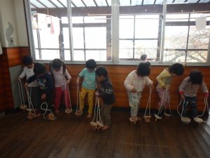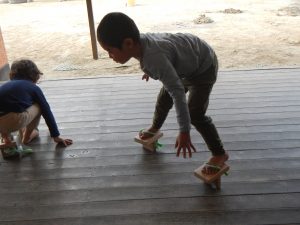 りす組さんは はとぐみさんよりむずかしいぞ 一本歯のぽっくりでした