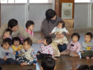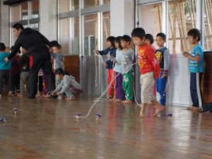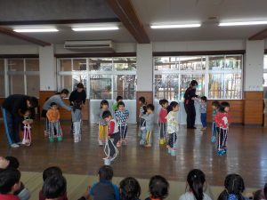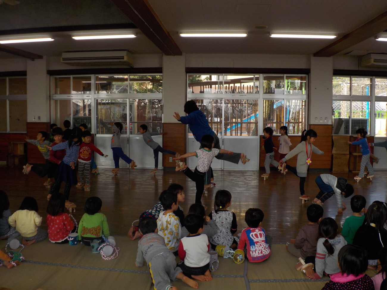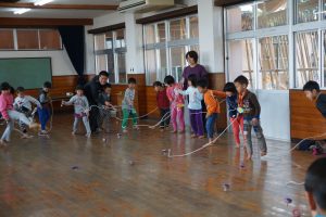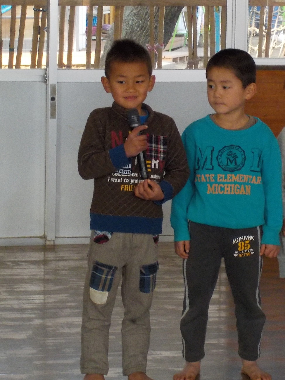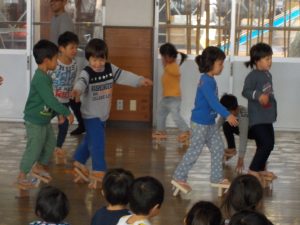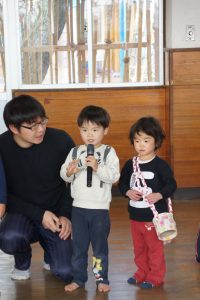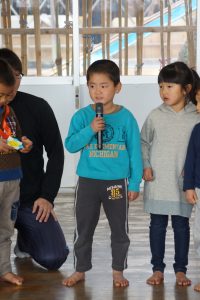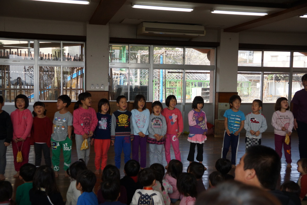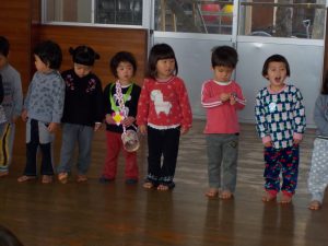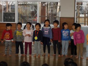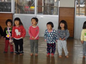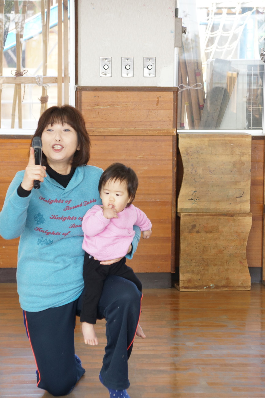 今日も元気な歌声がホールに響きます ♪ 山の子はどんな 大雪ふってても~ ♪