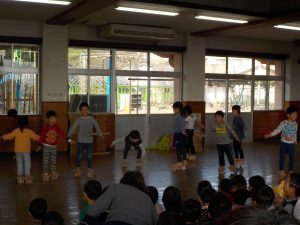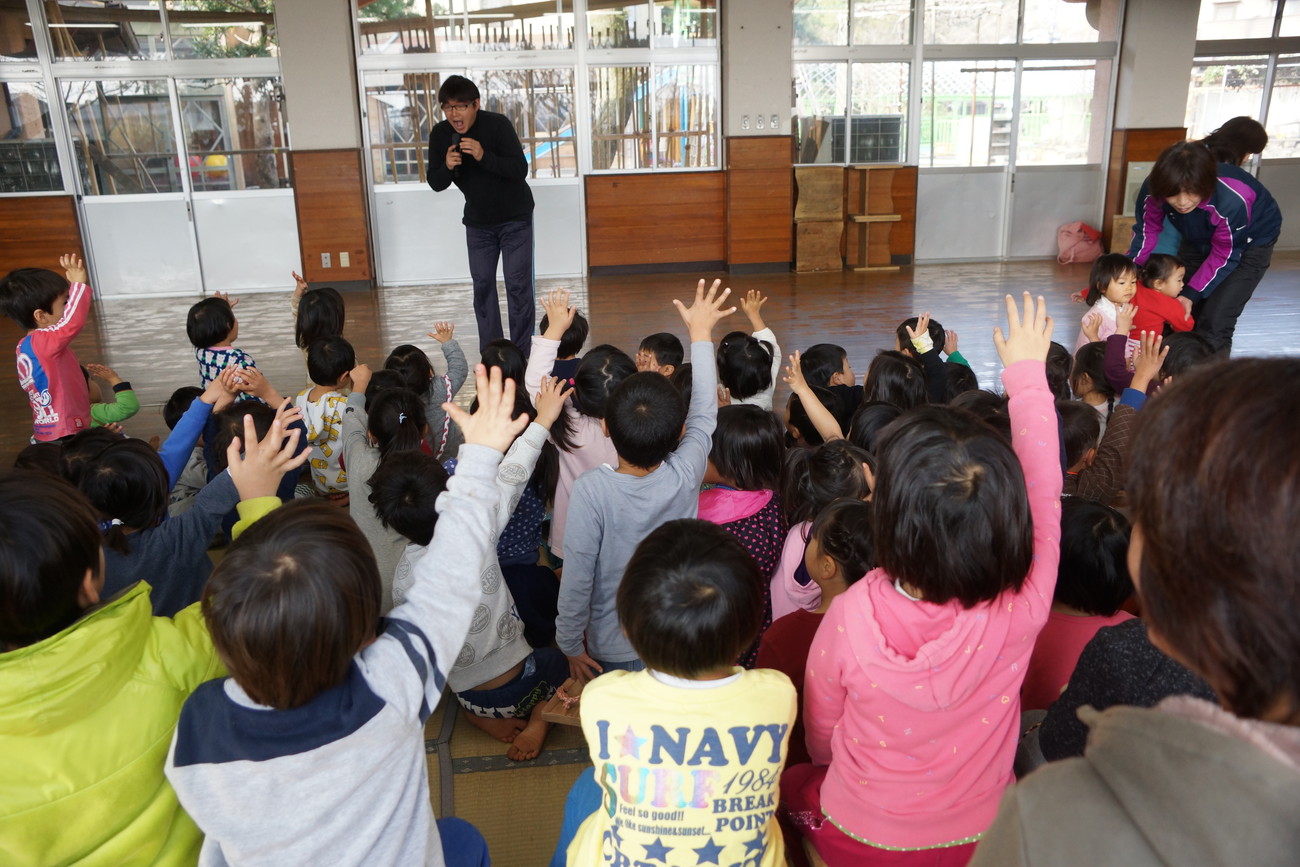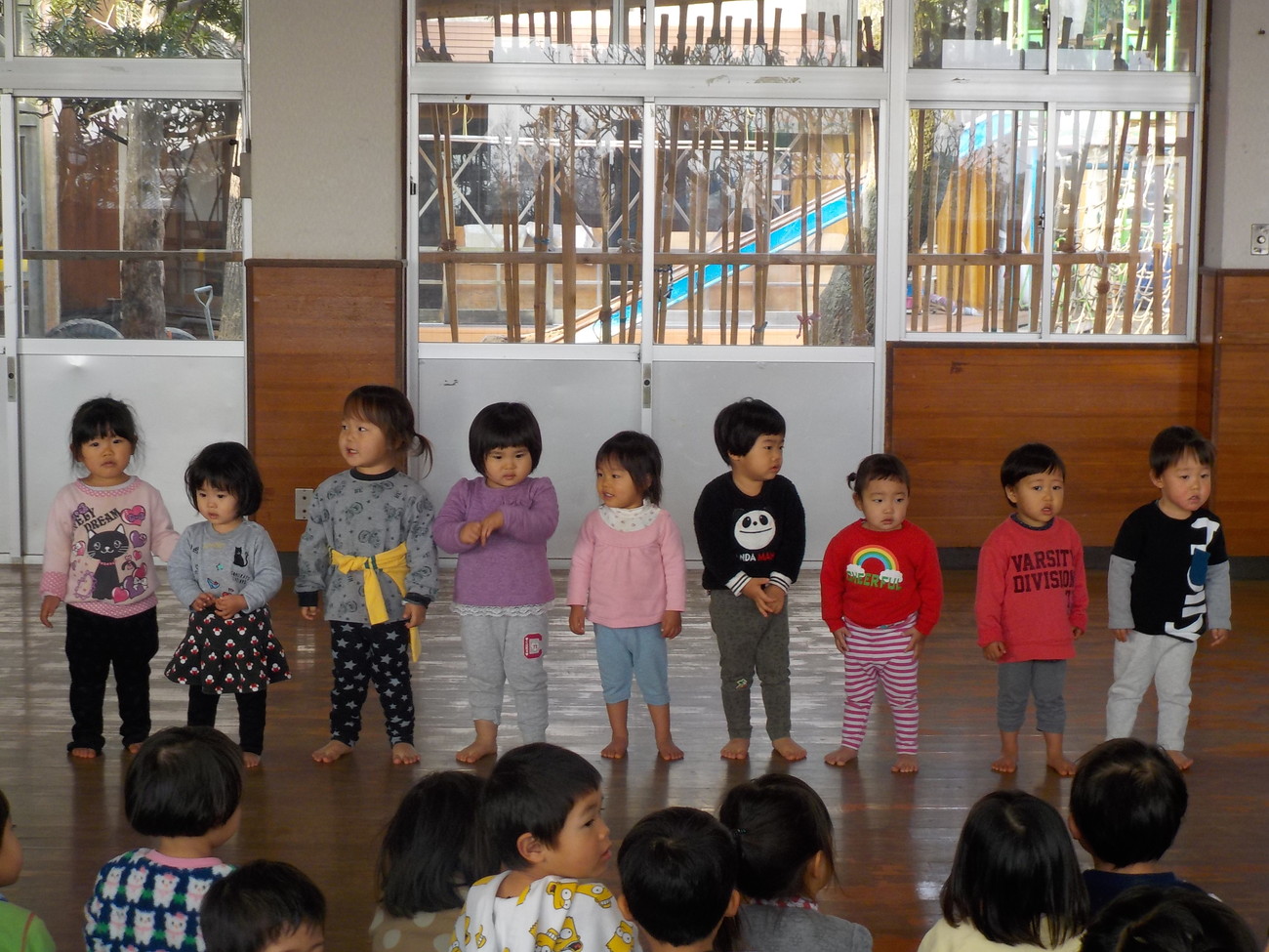 どのクラスから歌ってくれるかな? はい!はい!はい!