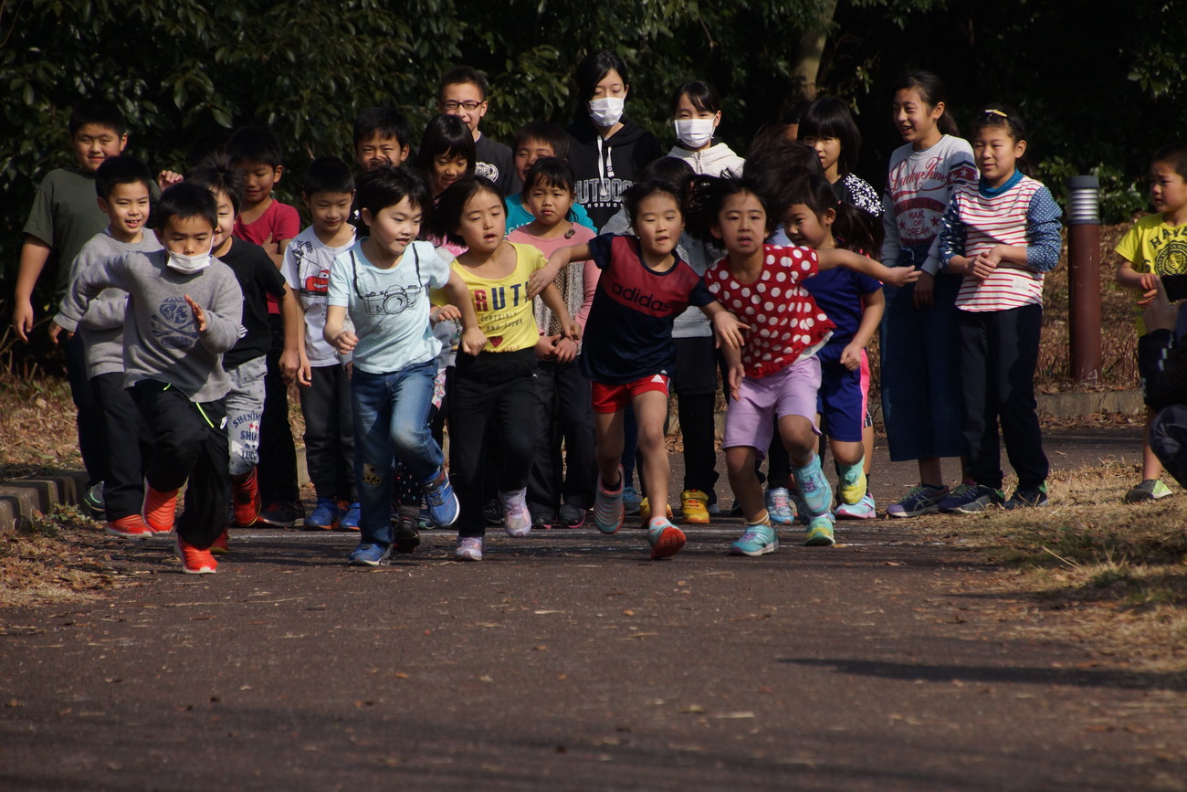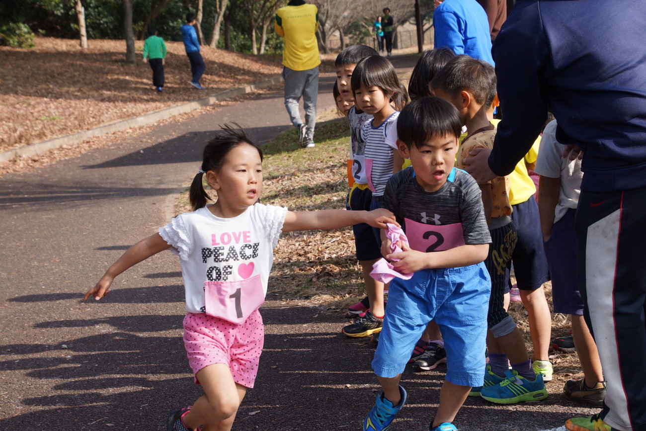 ぞう組は3人チームで駅伝です 第1走者のスタートです