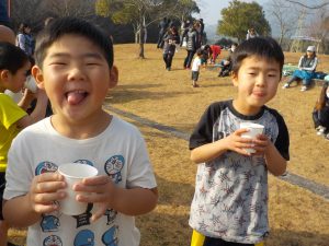 このあと 豚汁とおにぎりがふるまわれ、無事マラソン大会終了です。