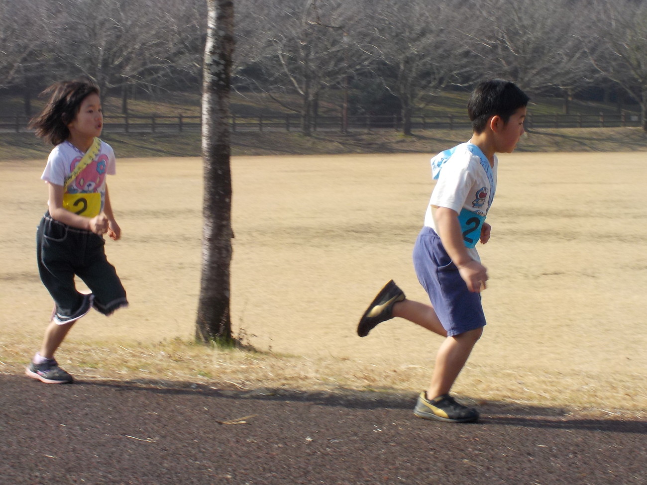 最後は全員で芝生の周りを走ります 完走したらいいものがもらえるんだって・・