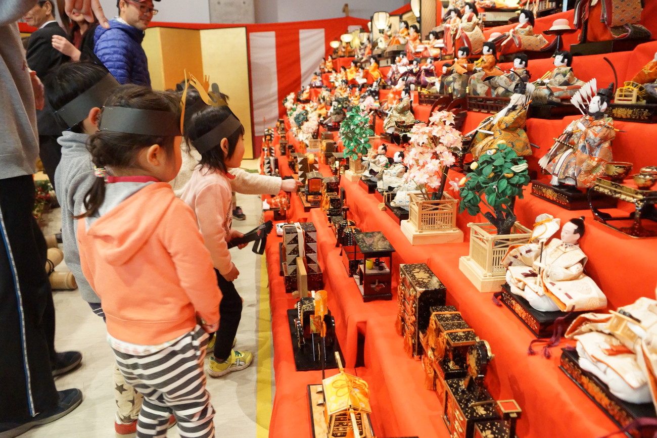 会場の中にはかわいいひな人形がたくさん飾ってありまして