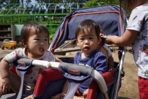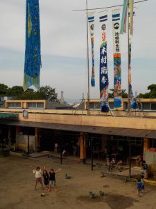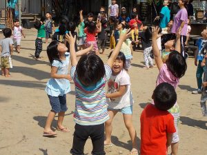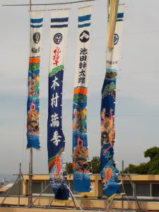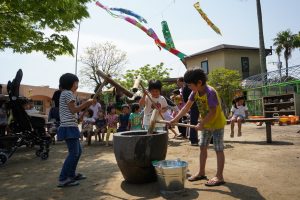 すてきな鯉のぼりが 保育園の空を泳いでいます