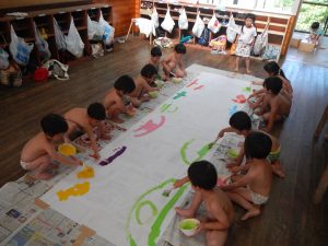年長さんは本物みたいなかっこいい鯉のぼりづくりに挑戦です