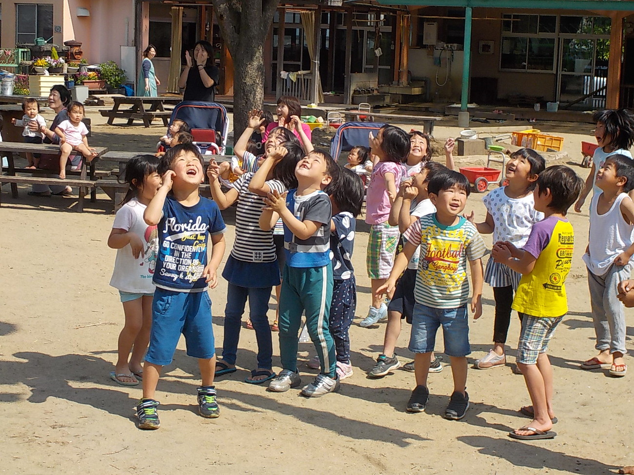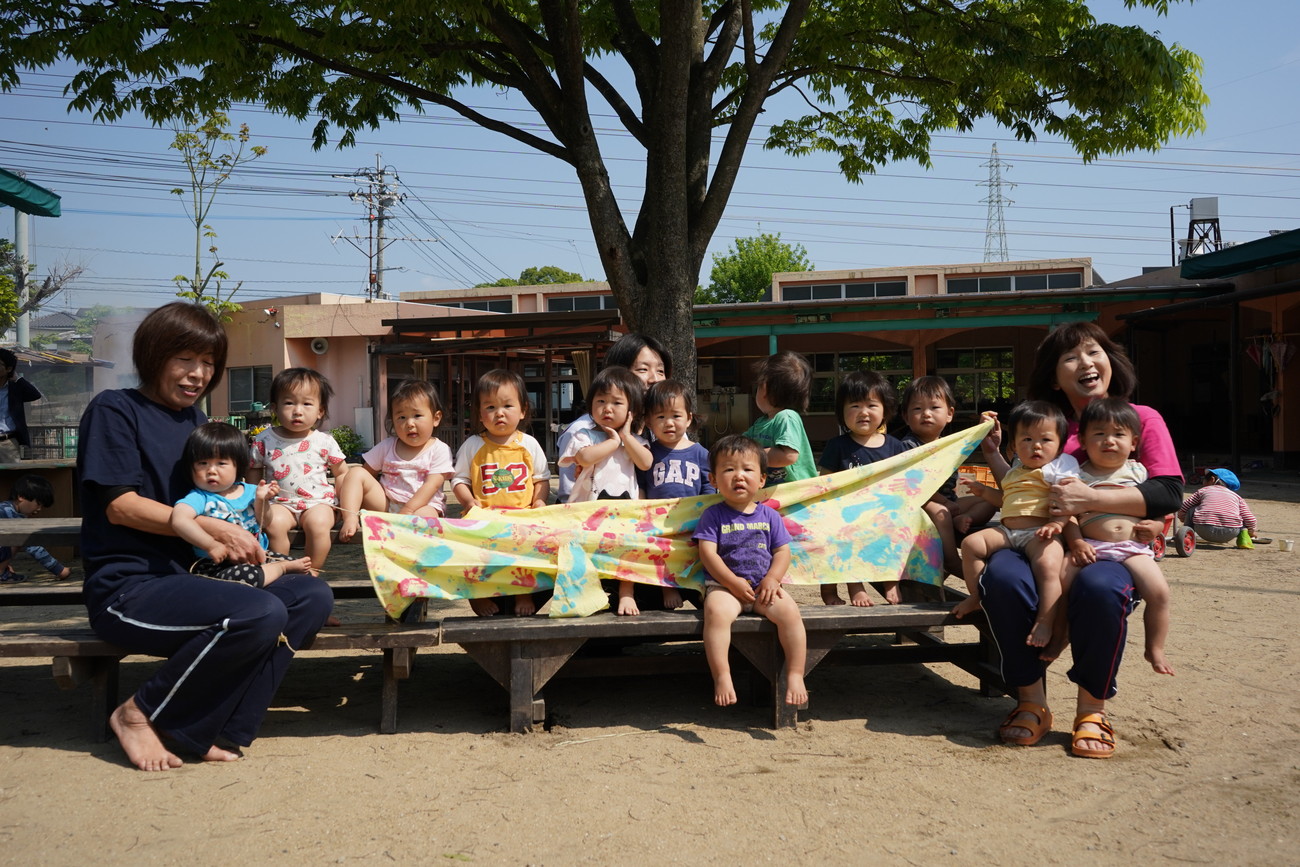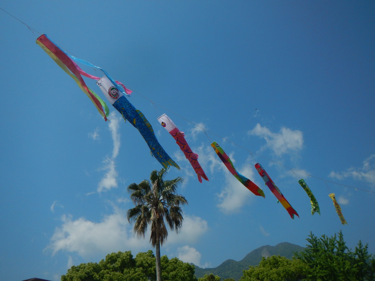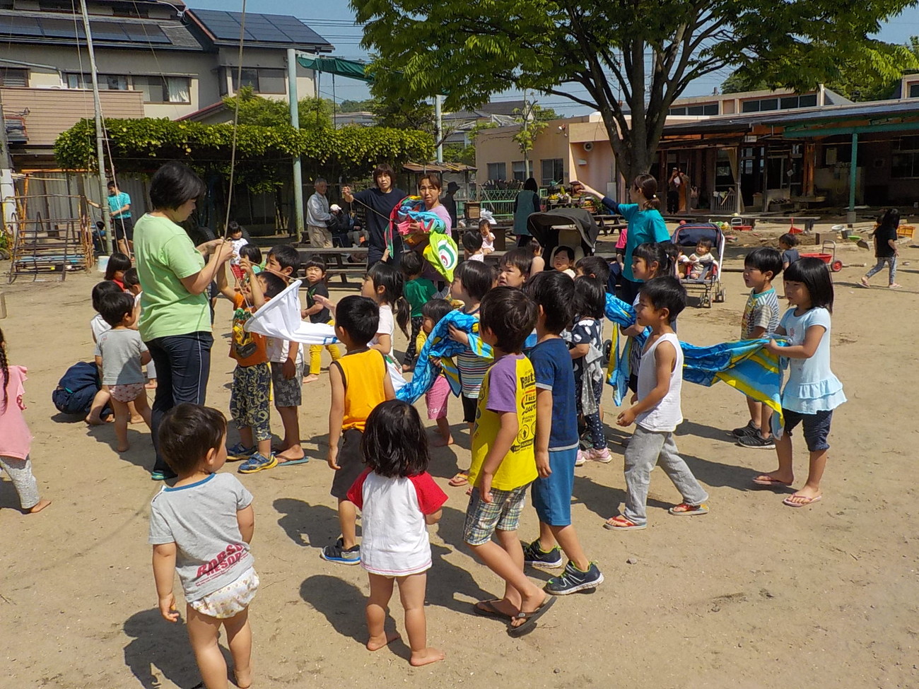 すてきな鯉のぼりが 保育園の空を泳いでいます