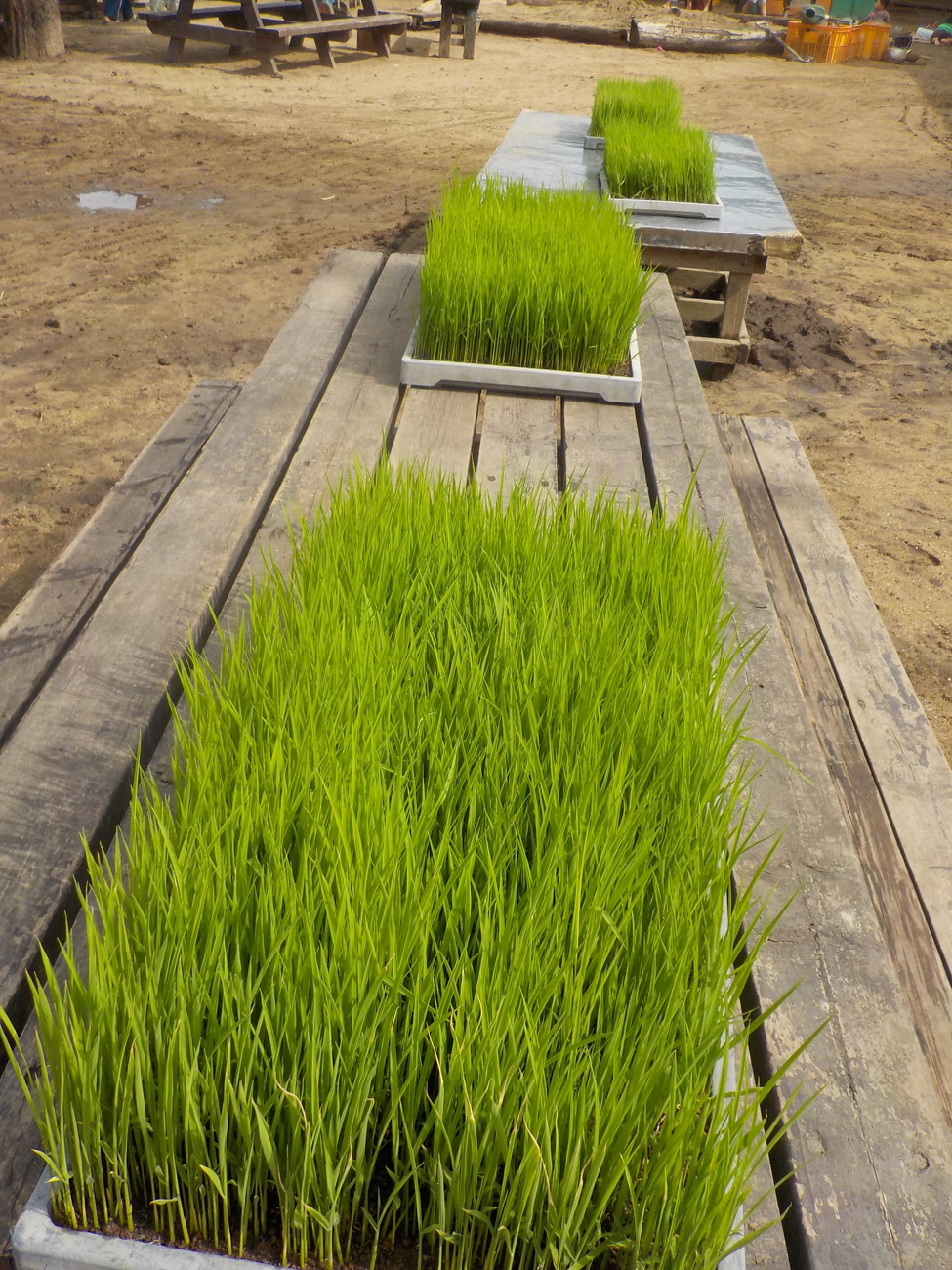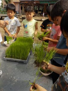 今日はいよいよ田植えです 植えやすいようにすこしずつ分けておきましょう