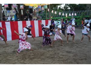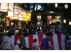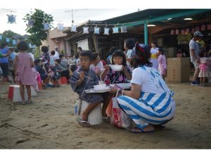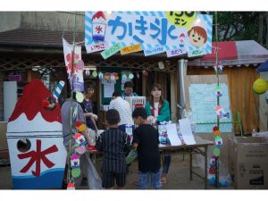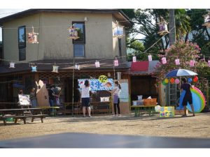 お昼から 夏祭りの準備にとりかかる保護者の皆さん