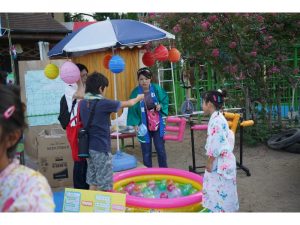 いろんなお店が並びます ヨーヨー釣り屋さんに
