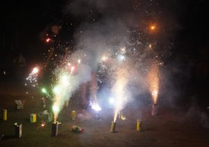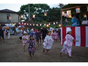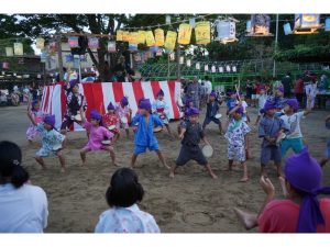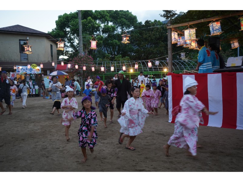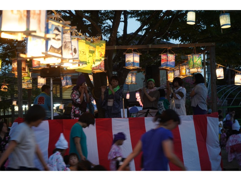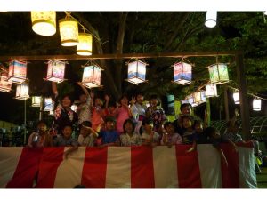 暗くなると 子どもたちが描いて作った提灯がきれいに輝きます