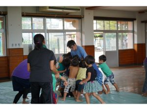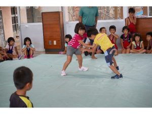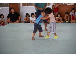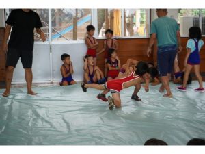 台風のため市民体育祭でできなかったレスリング、せっかくなので園のなかでレスリング大会です