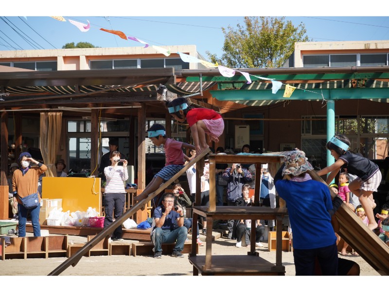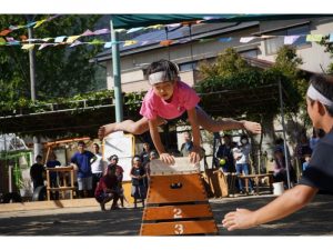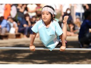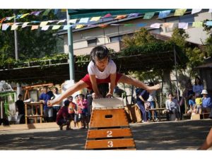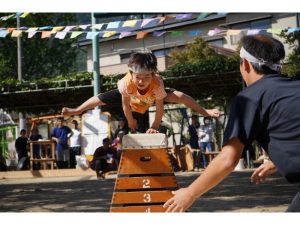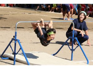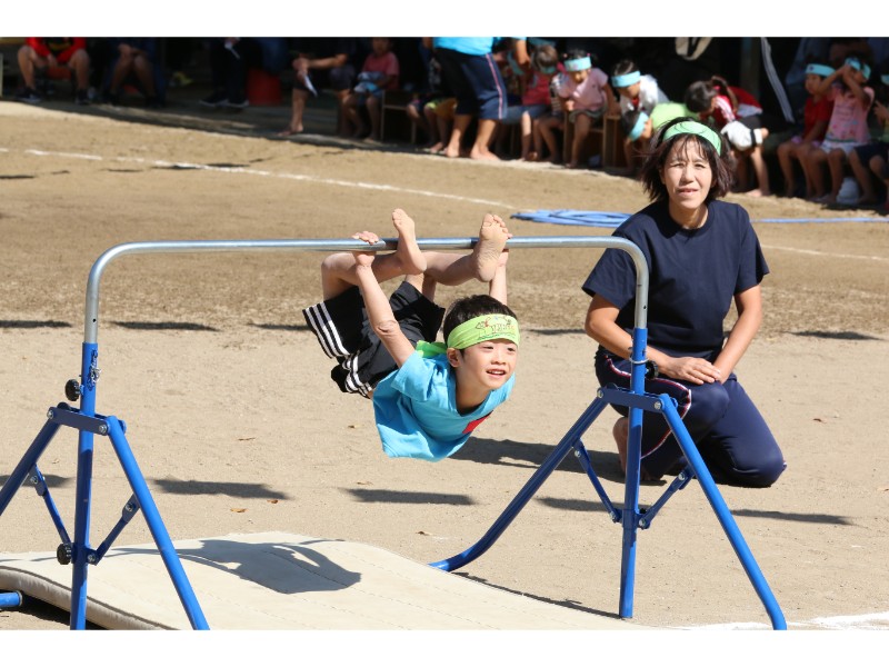 年長ぞう組さんは 跳び箱に鉄棒、戸板のぼりに、棒登り、いろんな課題に挑戦しました
