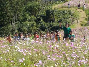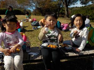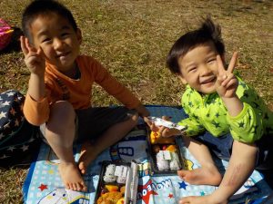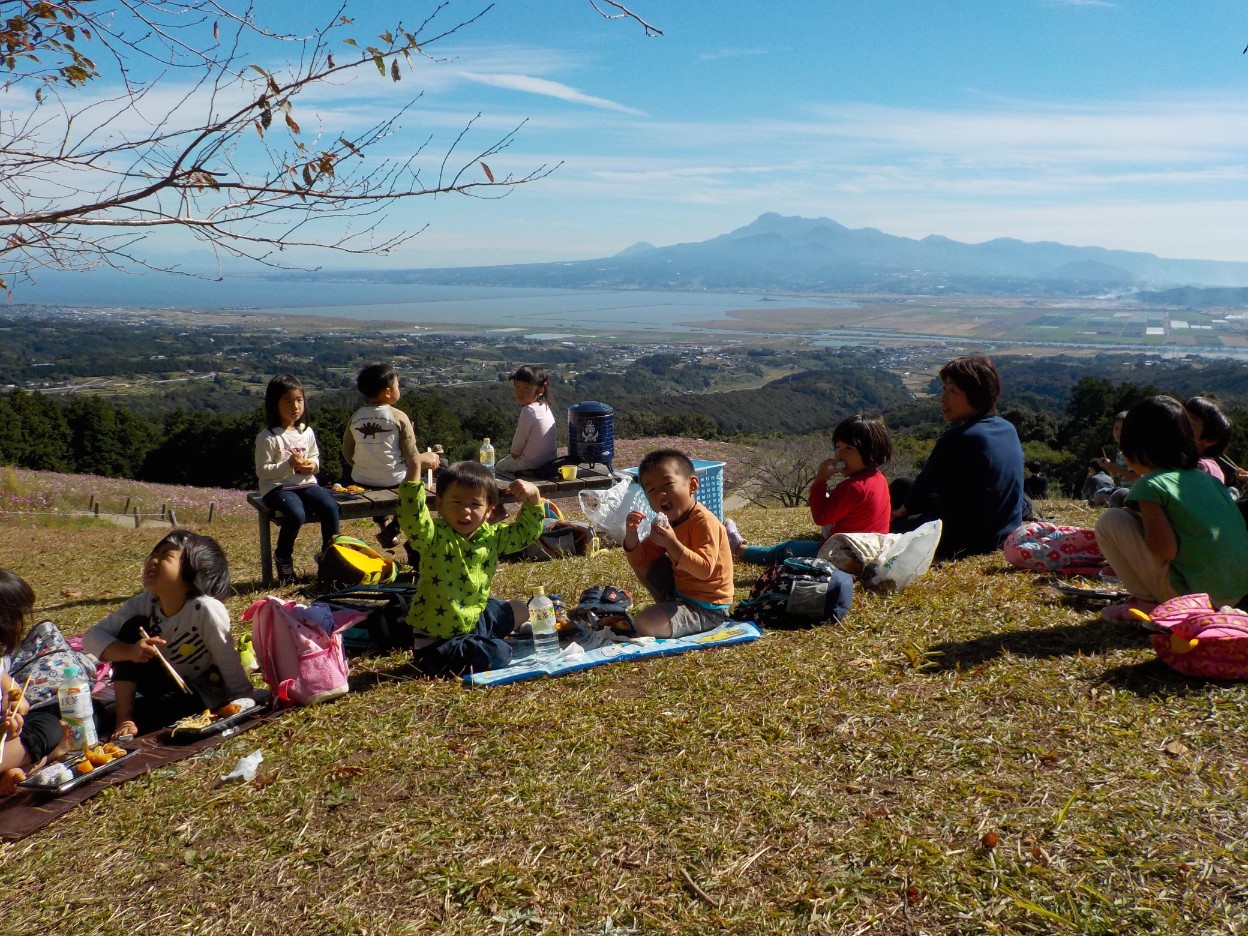 コスモスが咲いている丘で お昼ご飯