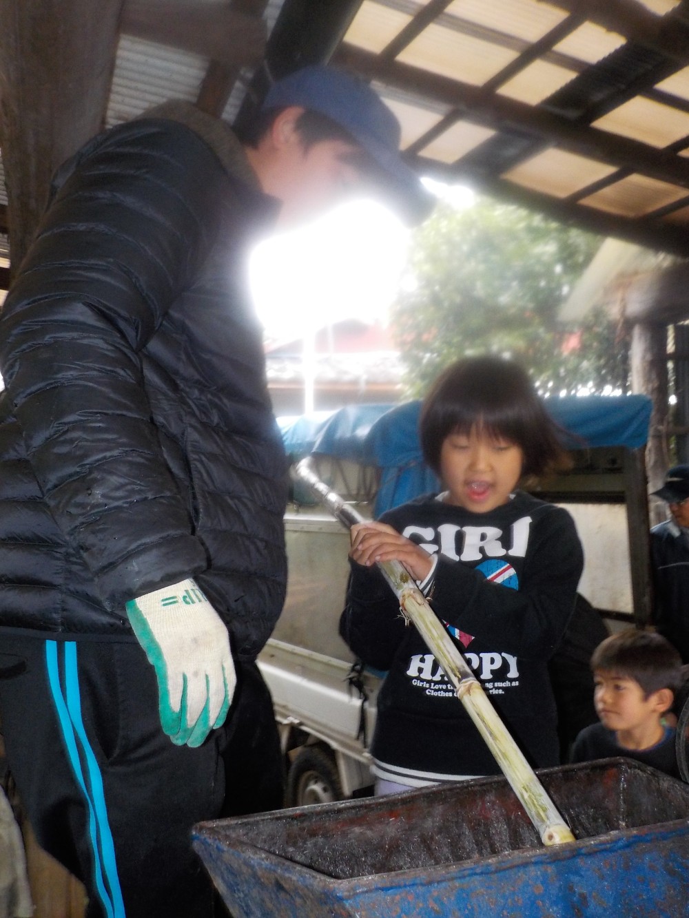 後日、この汁を煮詰めて 黒砂糖をつくります