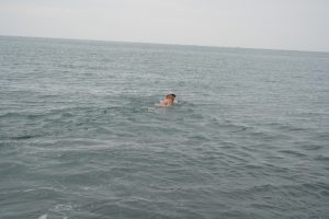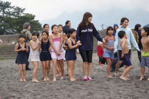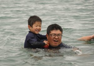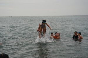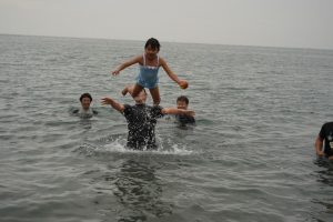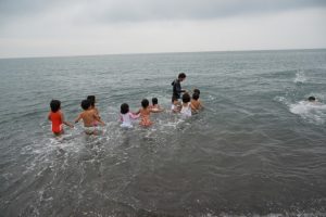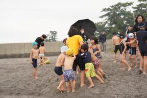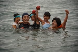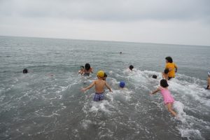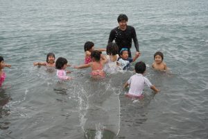 園長が一番に海へ!