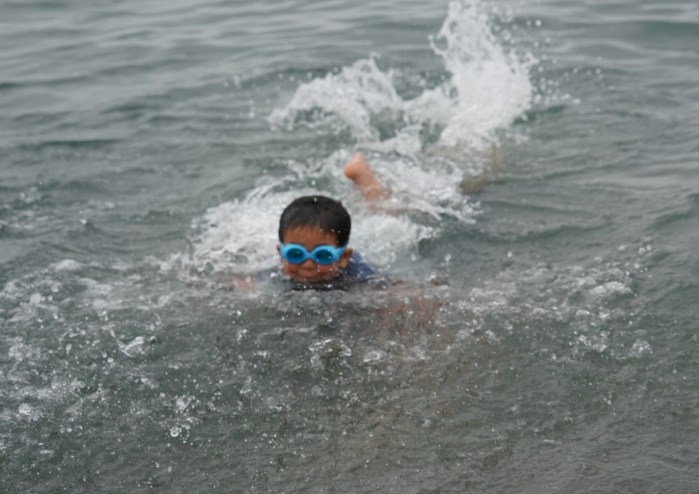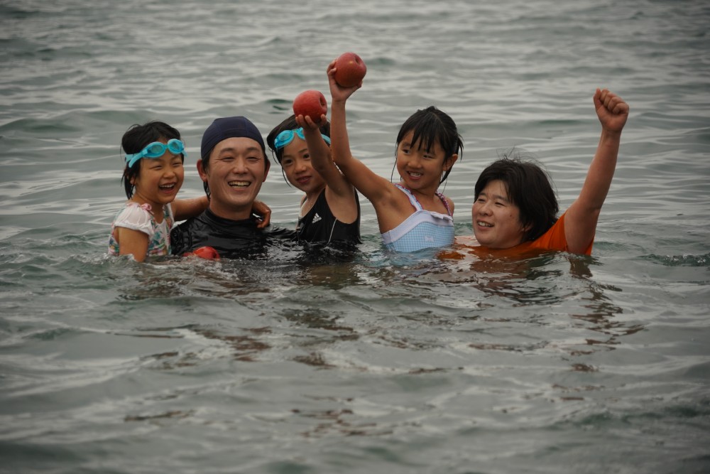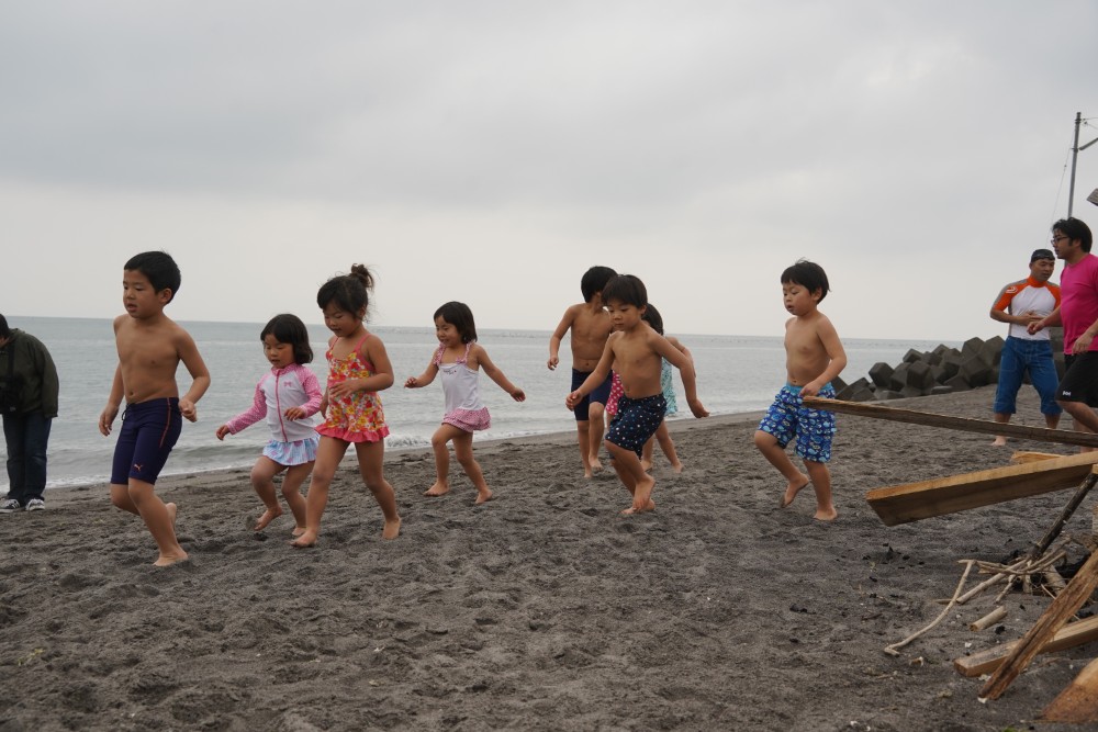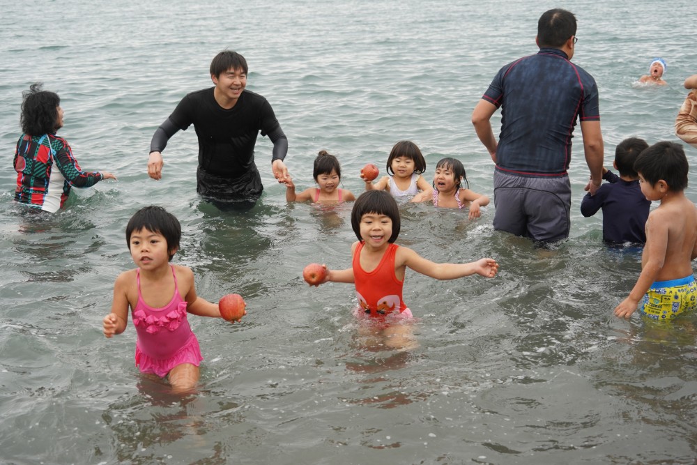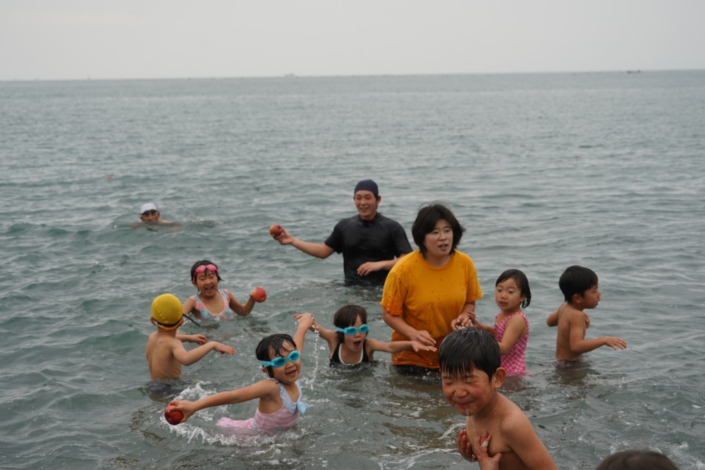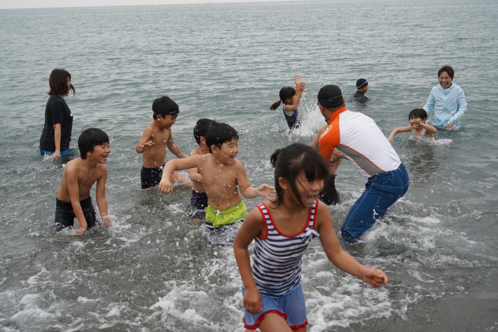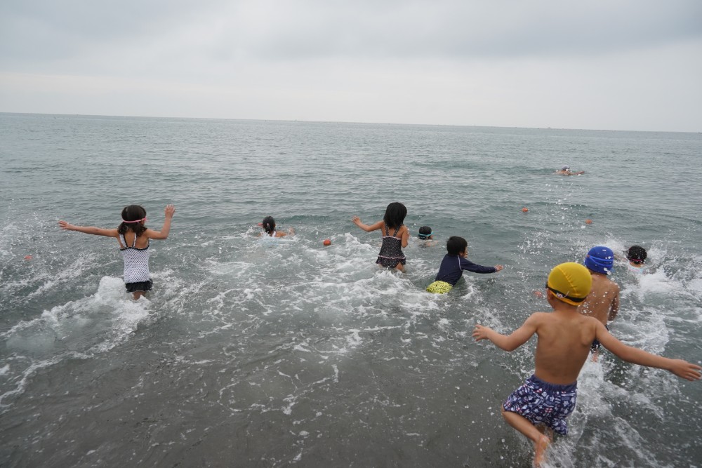 園長が一番に海へ!