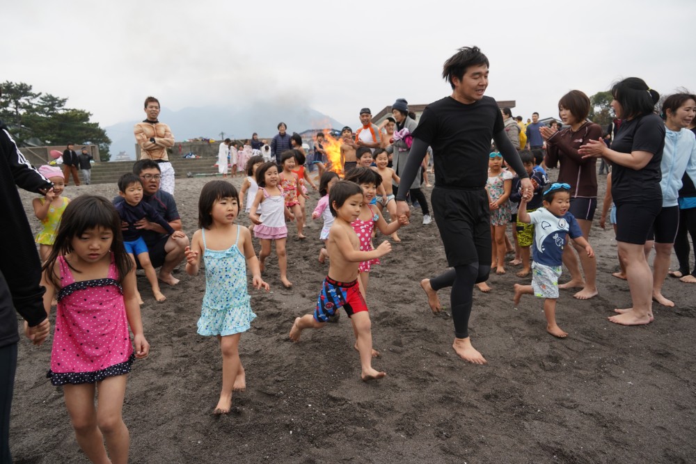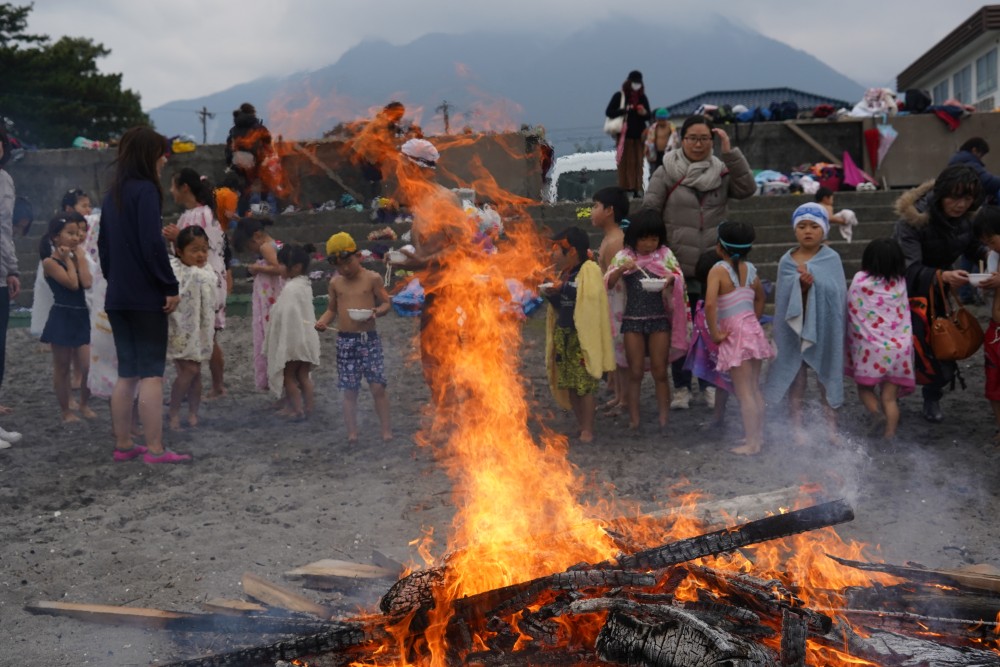 海から出た後は 焚火にあたって