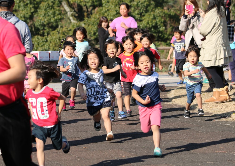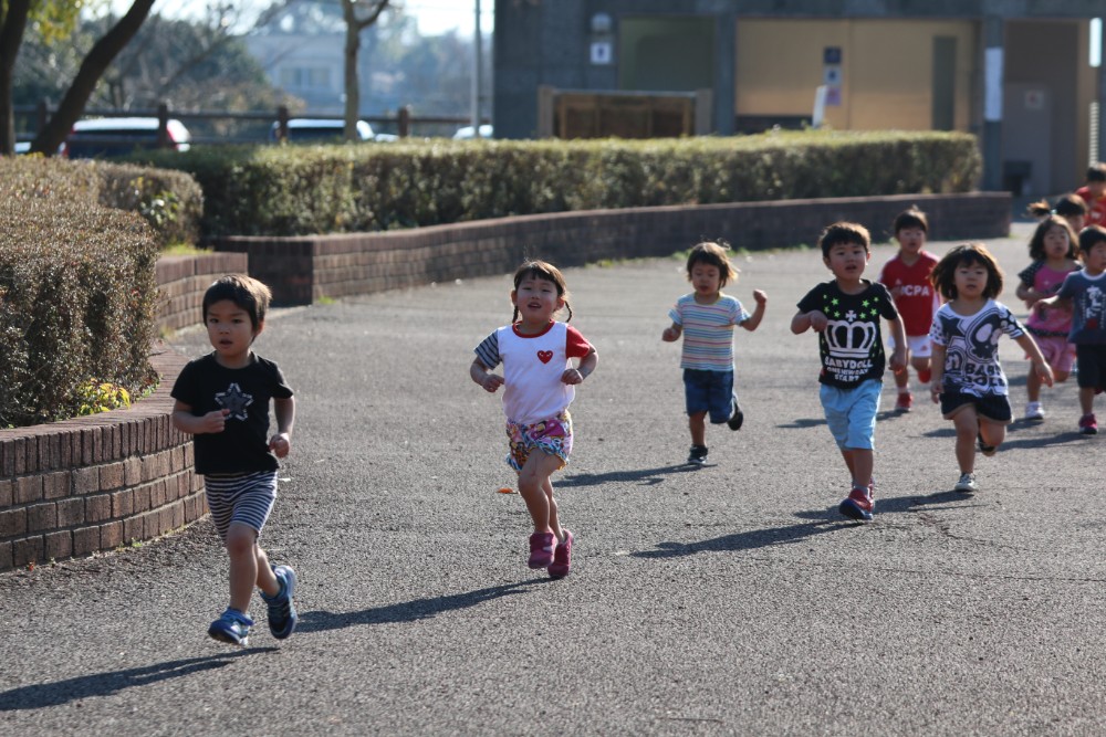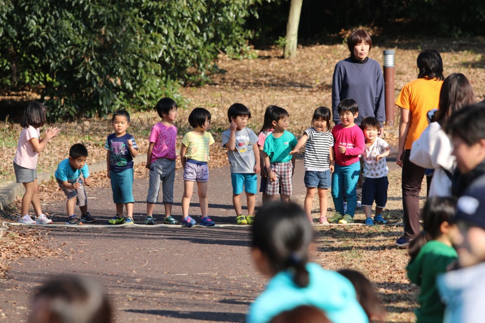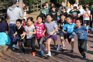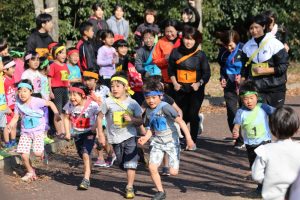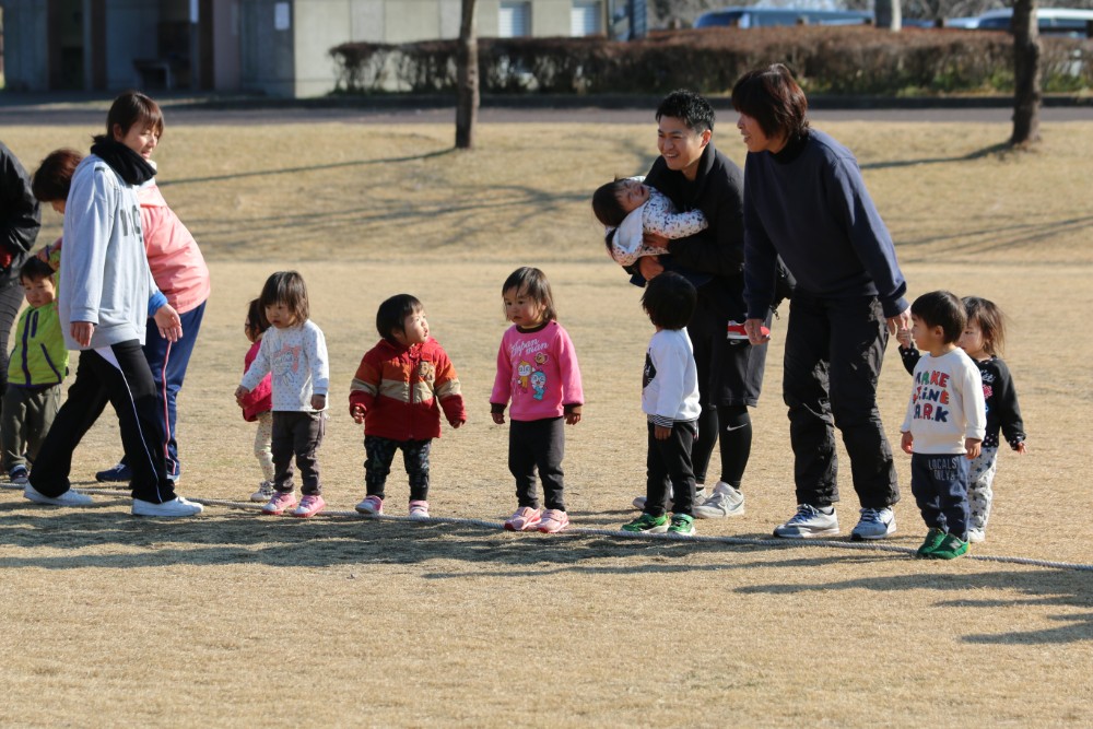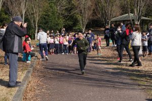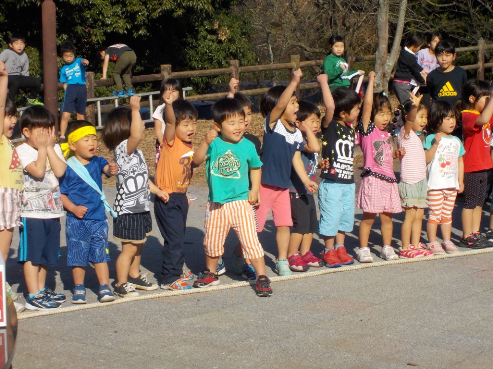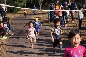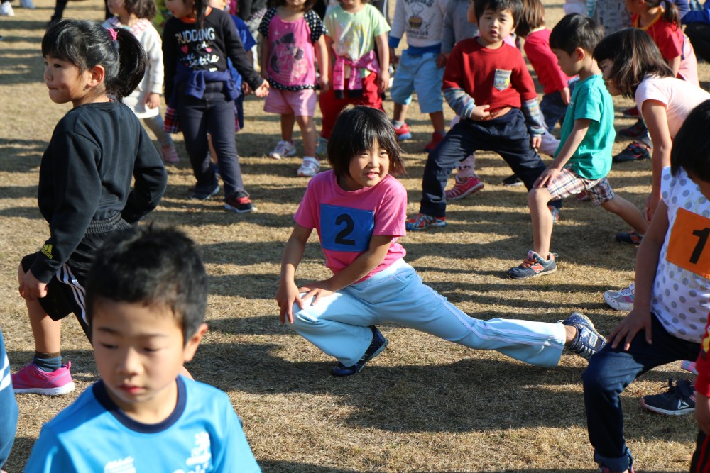 さあ、マラソン大会の始まりです あひる組さん スタートラインに立ちました