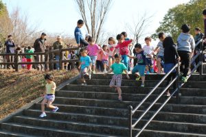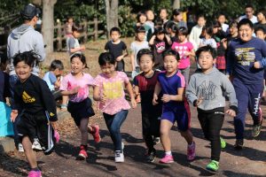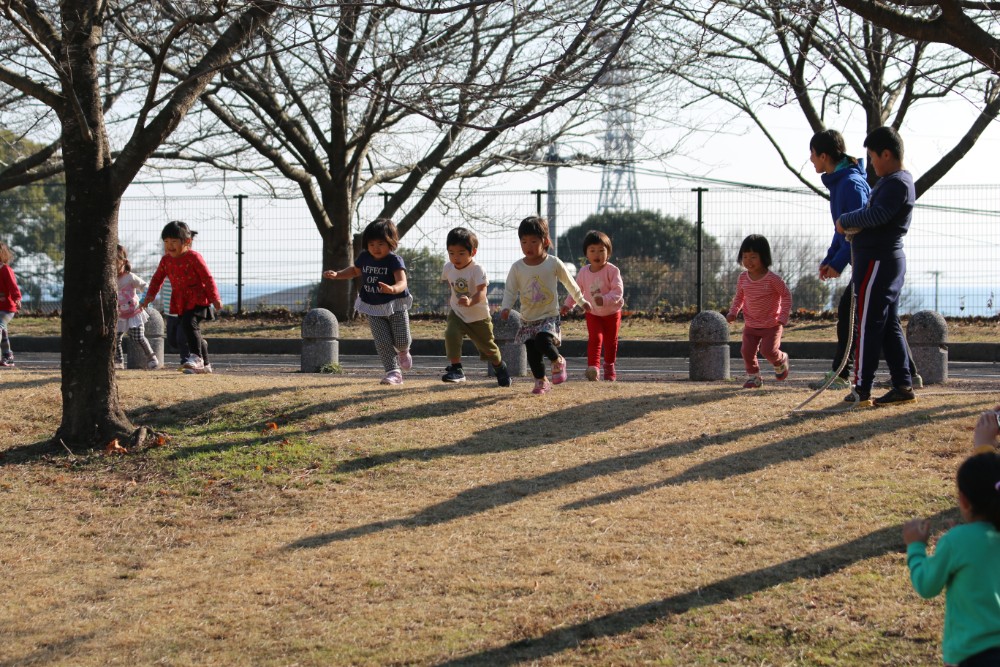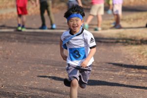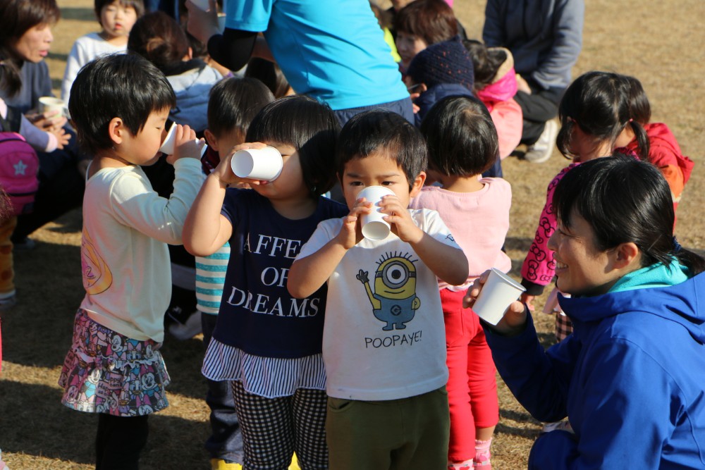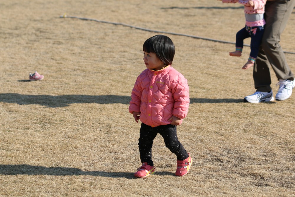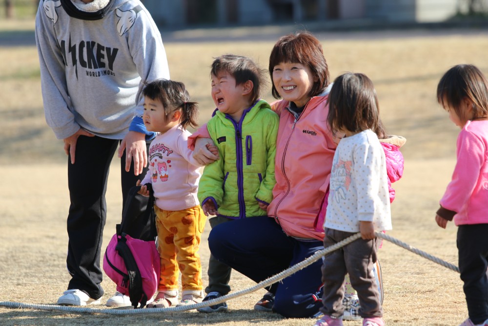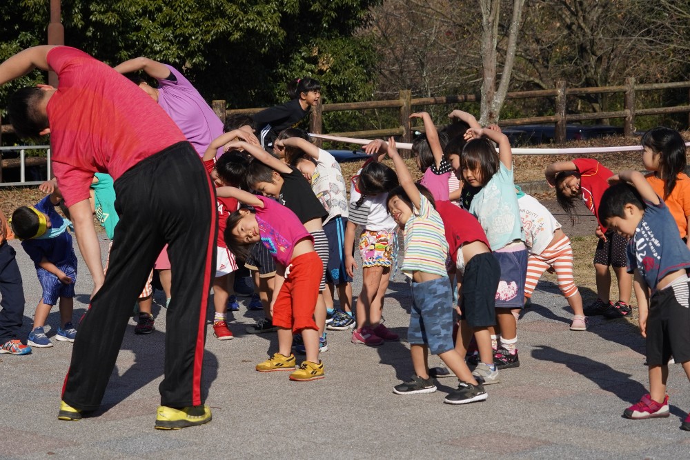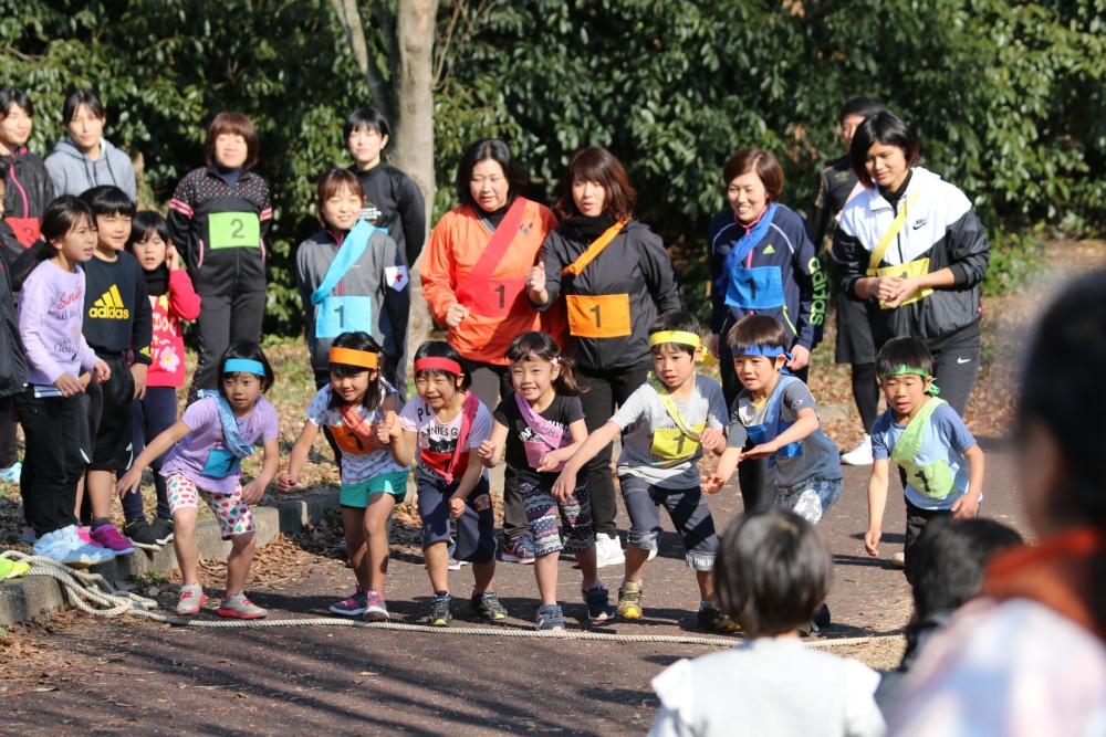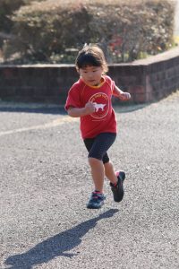 さあ、マラソン大会の始まりです あひる組さん スタートラインに立ちました