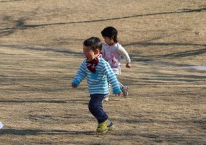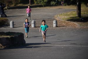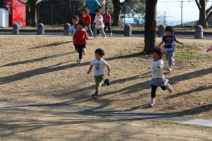 りす組さんは芝生のまわりを一周 距離が長くなります