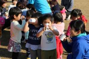 黒砂糖牛乳 黒砂糖は保育園の手作りです