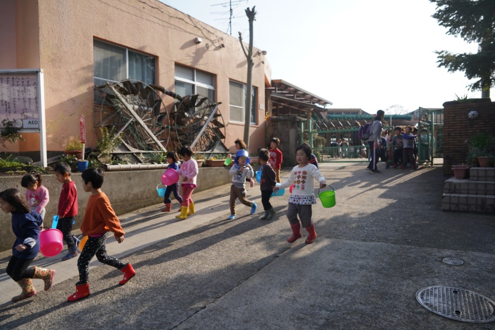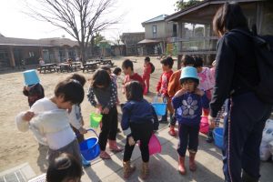 きりん組さんとりす組さん バケツをもって集合!