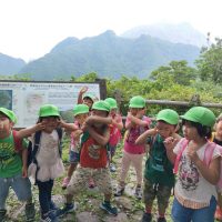筍掘りにでかけました ぞう組ときりん組は歩いてたけのこ山まで行きますよ 何かいいものを見つけました イタドリという植物 茎がすっぱくてかじると元気が出るよ 倒木の一本橋渡れるかな 落ちたらト …