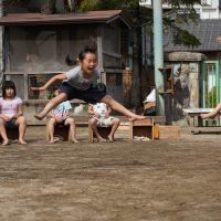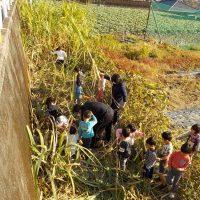 保育園の畑ではずっと前からサトウキビが植えられています 今年もこんなに大きく育っています 今日は収穫します 年長さんが鎌やのこぎりで刈っていきます きりん組さんが運び出す なかな …