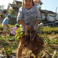 保育園の畑ではずっと前からサトウキビが植えられています 今年もこんなに大きく育っています 今日は収穫します 年長さんが鎌やのこぎりで刈っていきます きりん組さんが運び出す なかな …