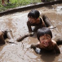 そろそろ田んぼの準備をしていきましょう 硬くなった田んぼの土を掘り返す、田越こしです がんばるぞ~ と張りきる年長ぞうぐみさん スコップで しっかり体重をかけて ひ …