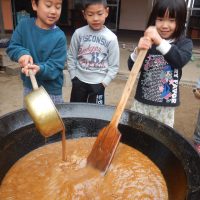 畑のサトウキビが今年も大きくなりました。 収穫して、黒砂糖作りに挑戦です。 まずは大人の背丈よりも大きくなったサトウキビを切り出します。 かじってもおいしいよ! ちょっと休憩 おやつタイム & …