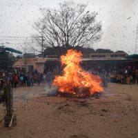 1月7日 鬼火をしました 書初めもしましたよ 学童さんは今年がんばりたい事 ほうほう よしよし がんばってね! ぞう組さんが松明をもって入場 &nb …
