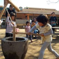 保育園でバザーが開かれました 保護者の皆さん 準備に大忙し いい匂いが漂ってきます こちらはもちつき お餅は大人気 開店前にはこの行列です &nb …