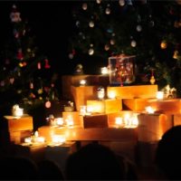 12月25日、今日はクリスマス! 保育園にもサンタさんが来てくれるでしょうか? クリスマス会が開かれるホールにみんなが集まってきました 子育て支援センターのお母さんたちによるハンドベルの演奏です   …