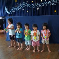 今日は7月7日 天気は雨 梅雨のおかげでコツコツ楽しんだ製作 飾り付けがホールで始まった 願い事もいろいろ 叶うといいね はじまりはじまり 誕生会と七夕会 大きくな …