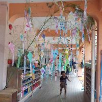 今日は七月七日、七夕の日 保育園では7月のお誕生日会と七夕のお祭りです 竹に飾りをつけに行きましょう いいのができたかな? あたしもつけようっと &n …