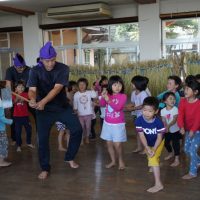 覗き込んでいるのは何でしょう・・ この前とってきたカエルの卵から孵ったオタマジャクシ 元気かな 誕生日会の前に・・ 卒園式にむけて練習中の竹踊り あたしたちだって 上手だもんね …