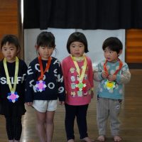 2月の誕生日会です よっ、よっ こちらも よっ よっ 年長さんは竹馬の修業を始めました ♪ か~ごめ かごめ か~ごのな~かのと~り~は ♪ みなさんホールに集まっ …