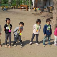 9月の誕生日会です 今日の誕生日会は園庭でひらかれました 保育園中にみんなのすてきな歌声がひびきます ぼくたちは手あそびするよ 9月生まれのお友だち …